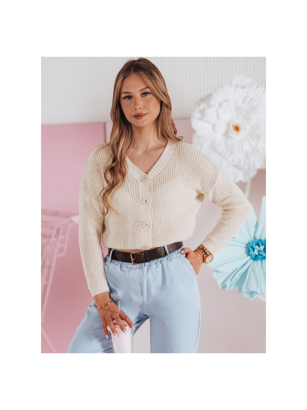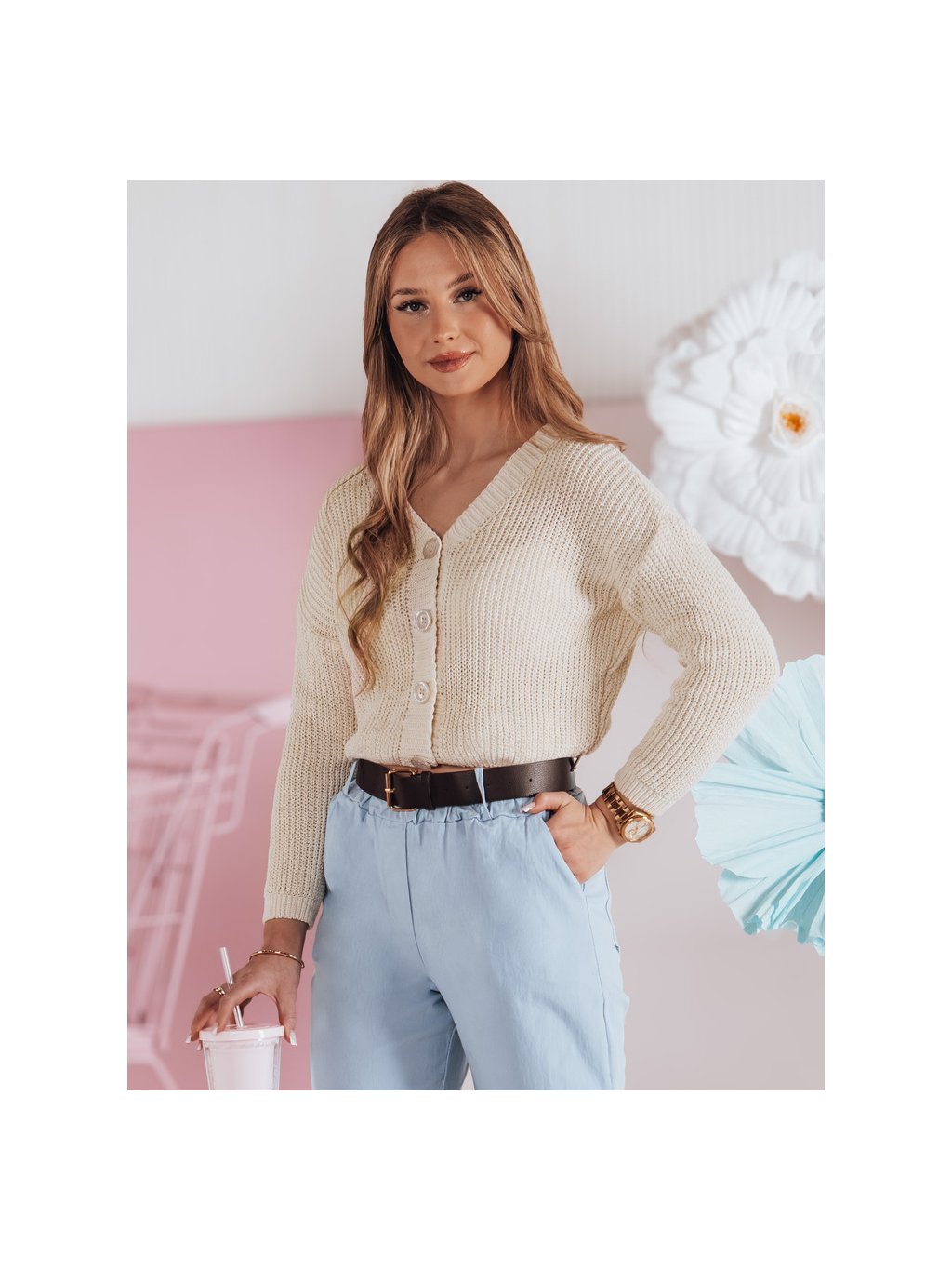 Smetanový dámský svetr s knoflíky SWEETDREAM