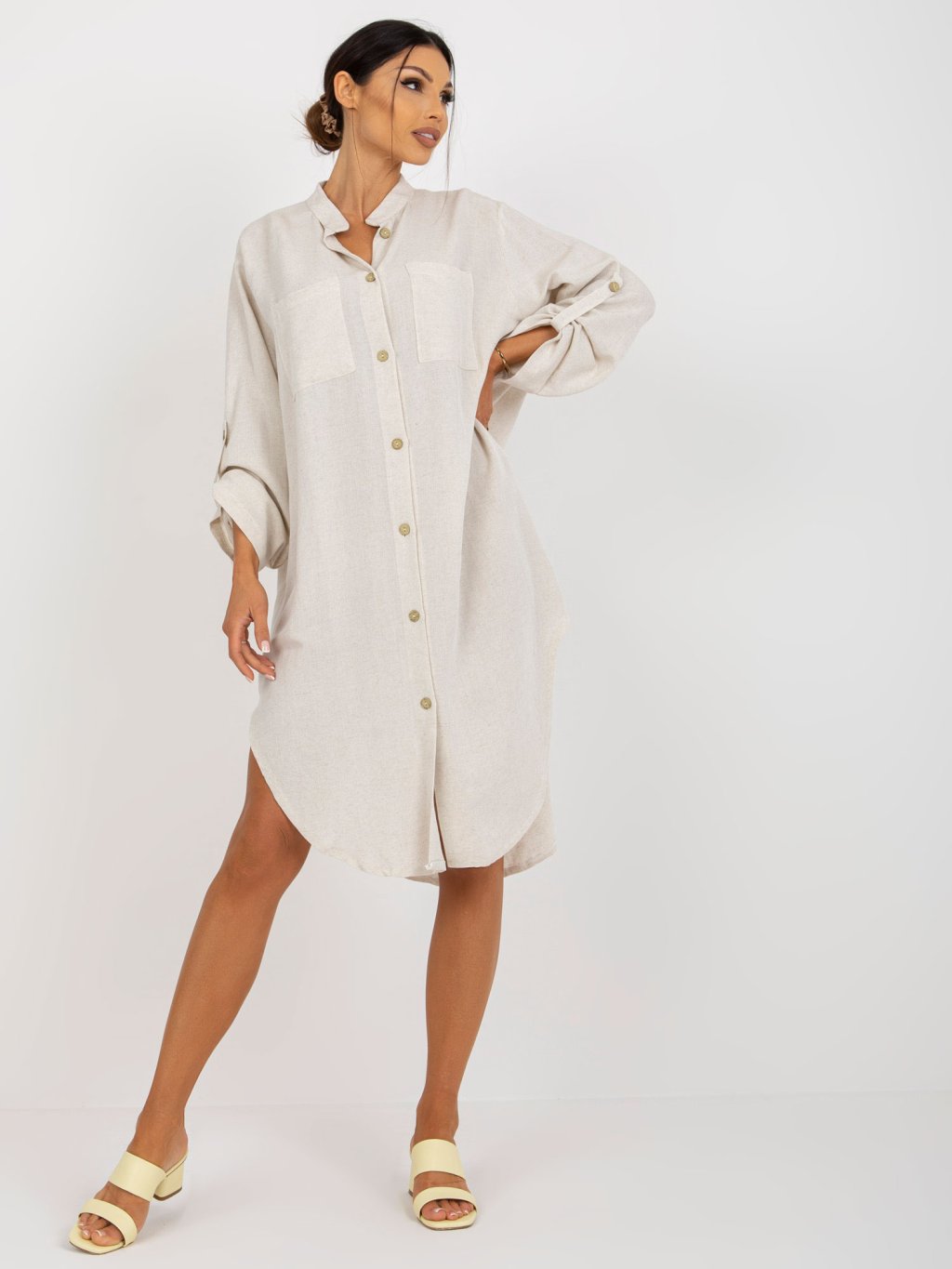 Světle béžové košilové midi šaty