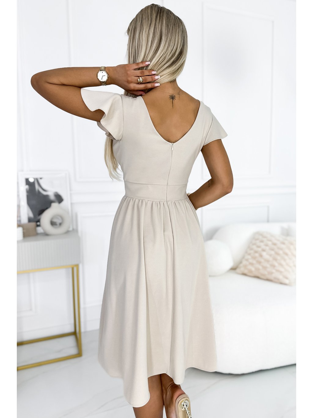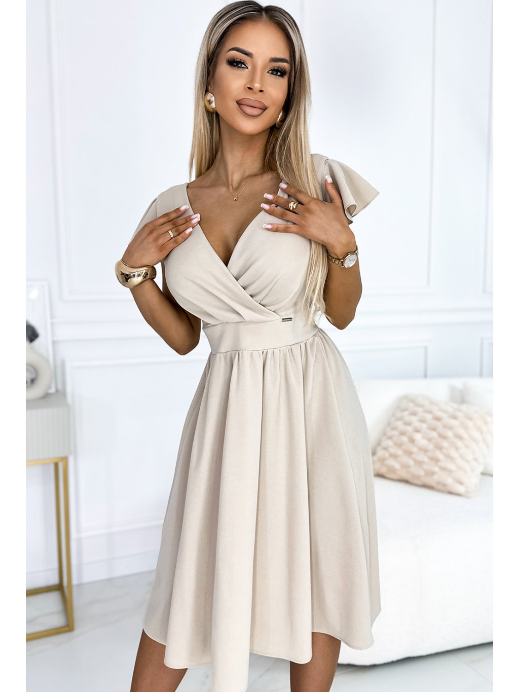 Světle béžové midi šaty MATYLDA