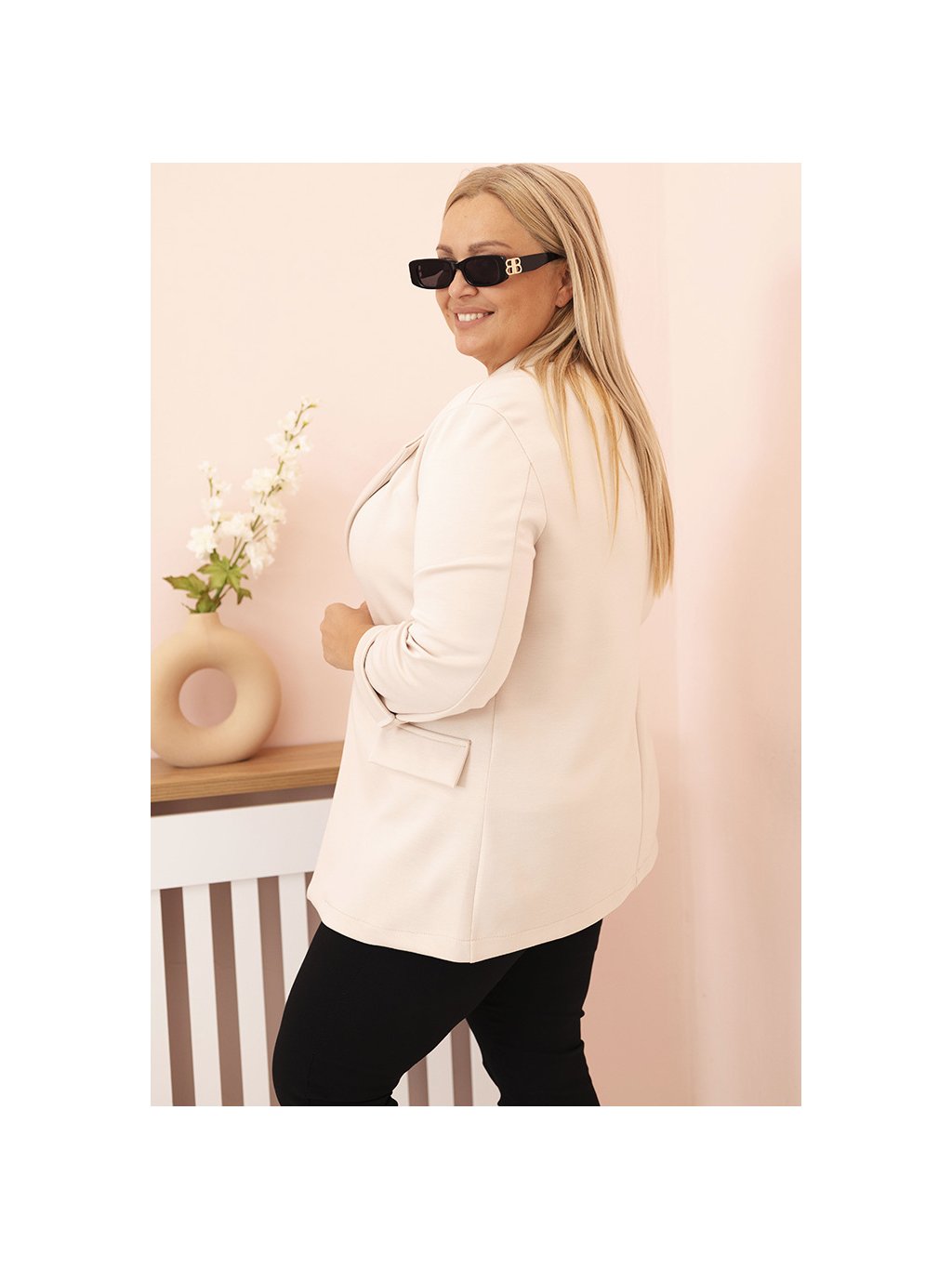 Světle béžový dámský viskózový plus size blejzr s klasickým límcem
