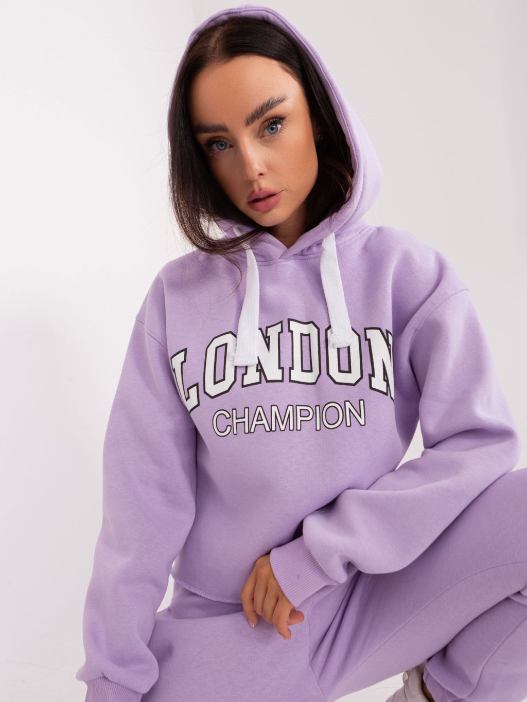 Světle fialová teplákovka Laraina s bílým nápisem "London"
