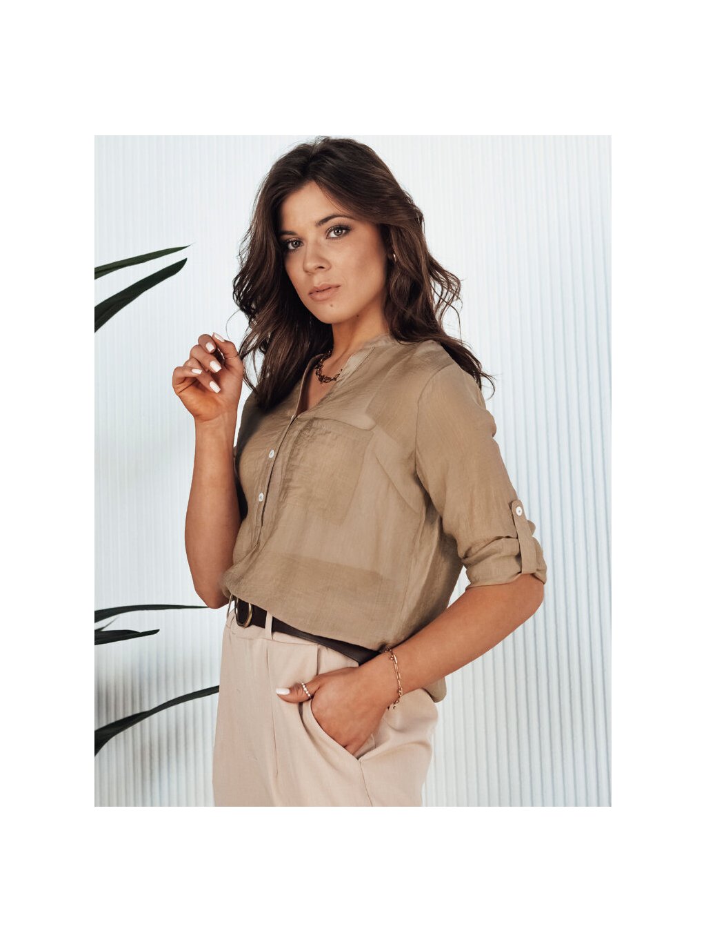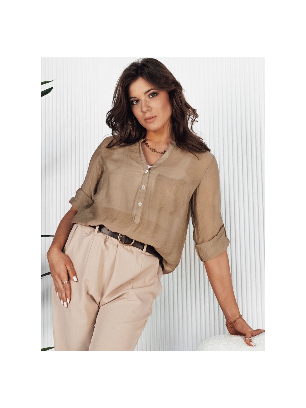 Světle hnědá košile z jemného materiálu s kapsou LUNA