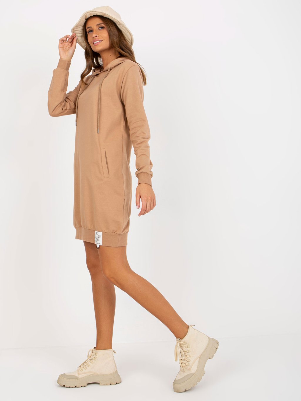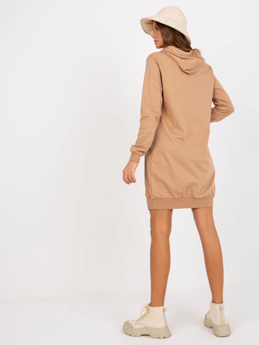 Světle hnědé mikinové šaty s kapsami