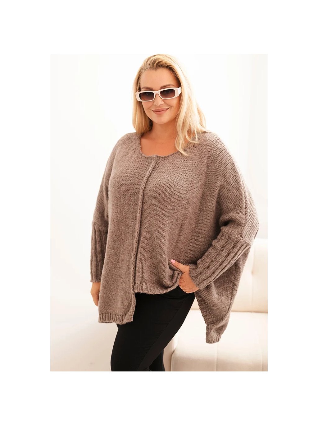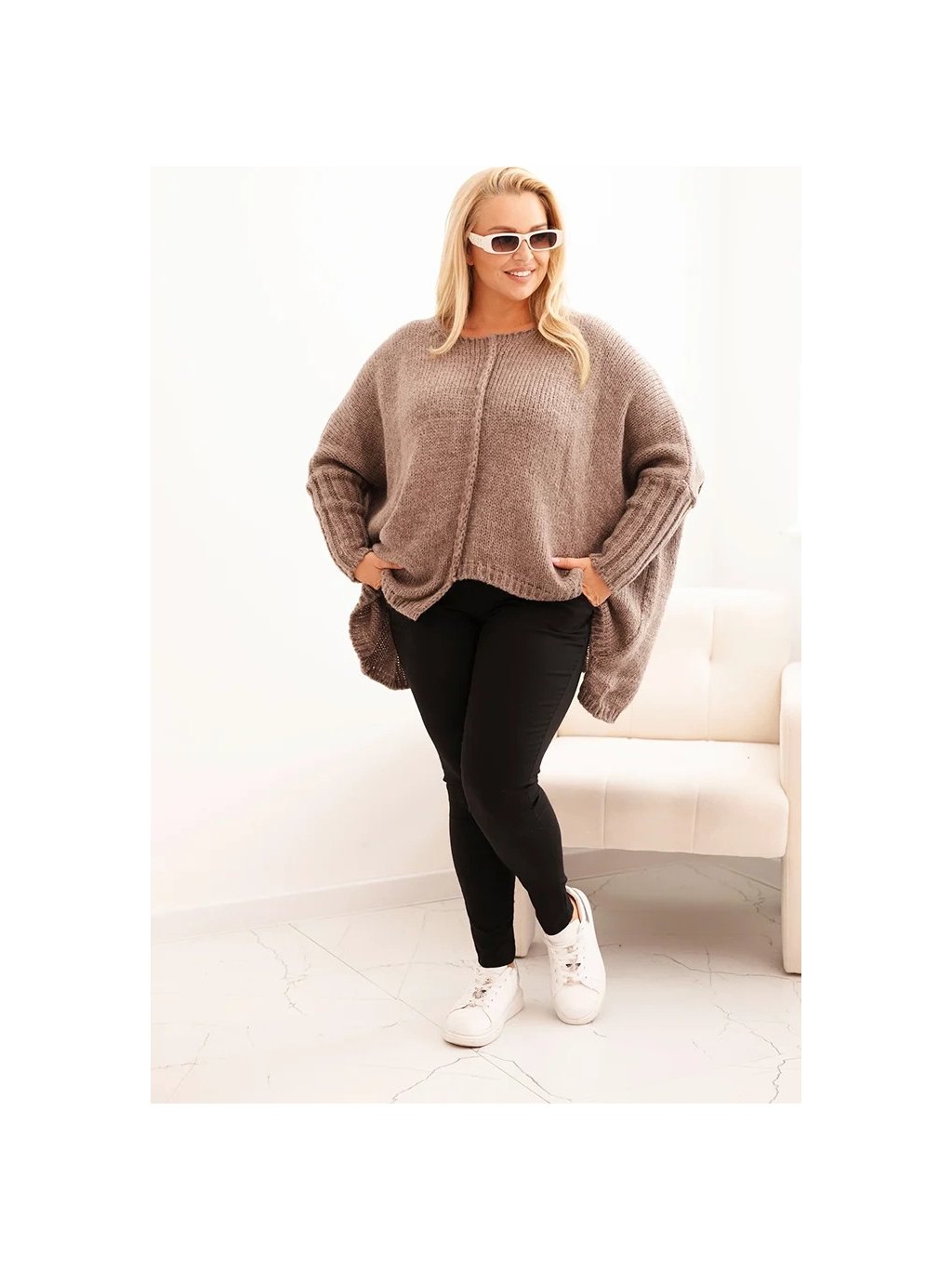 Světle hnědý dámský asymetrický plus size pletený svetr