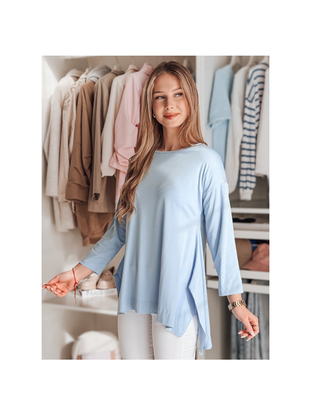 Světle modrá dámská asymetrická oversize halenka s přívěskem COMFILA