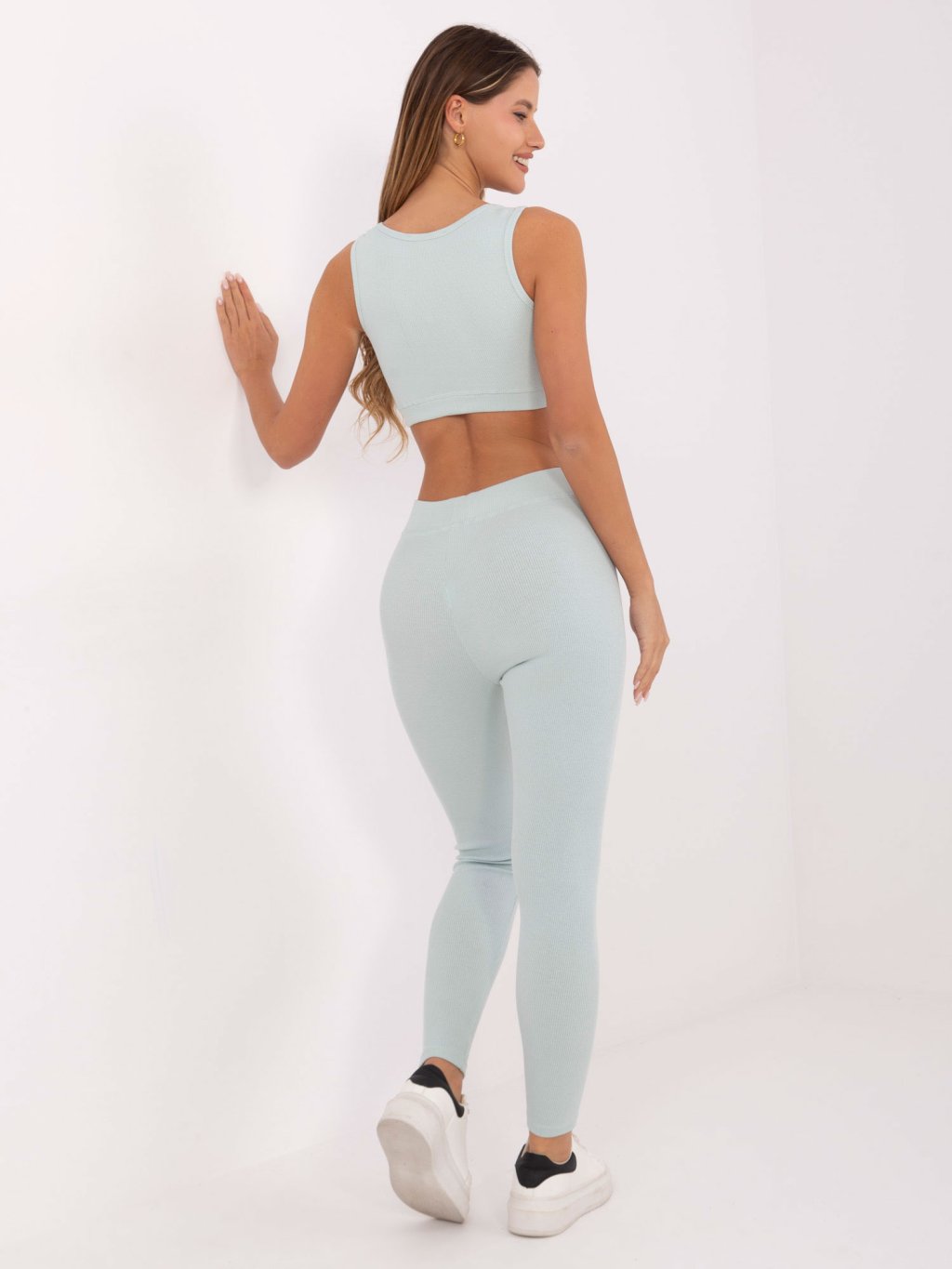 Světle modrá dámská žebrovaná souprava topu a legín