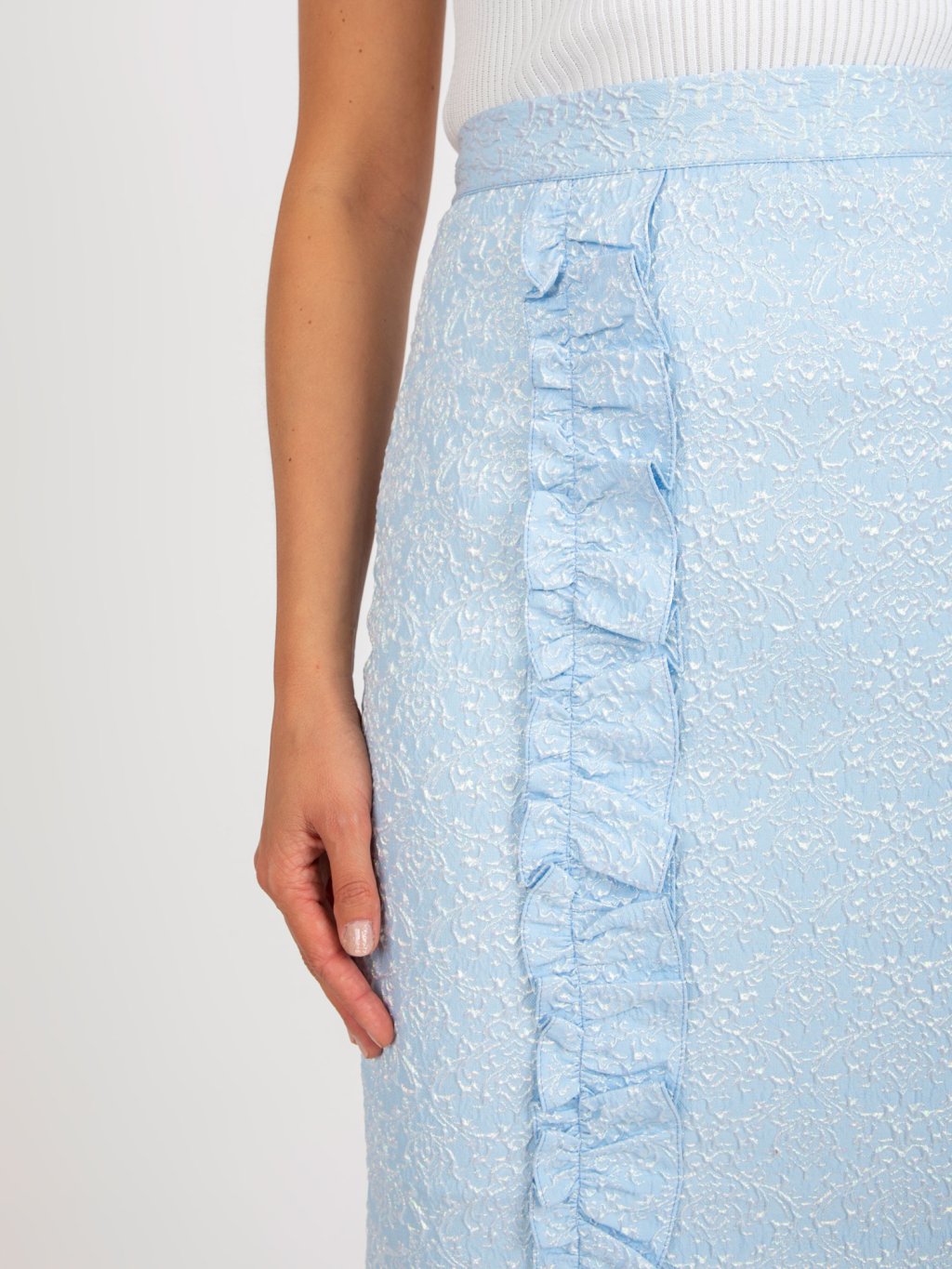 Světle modrá vzorovaná uplá sukně
