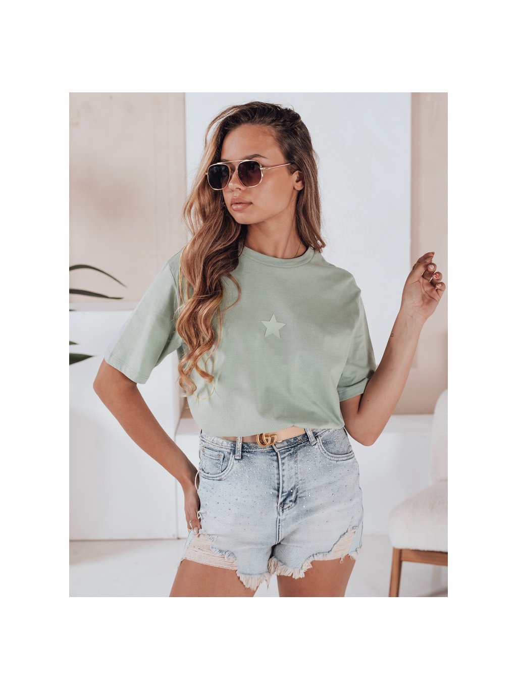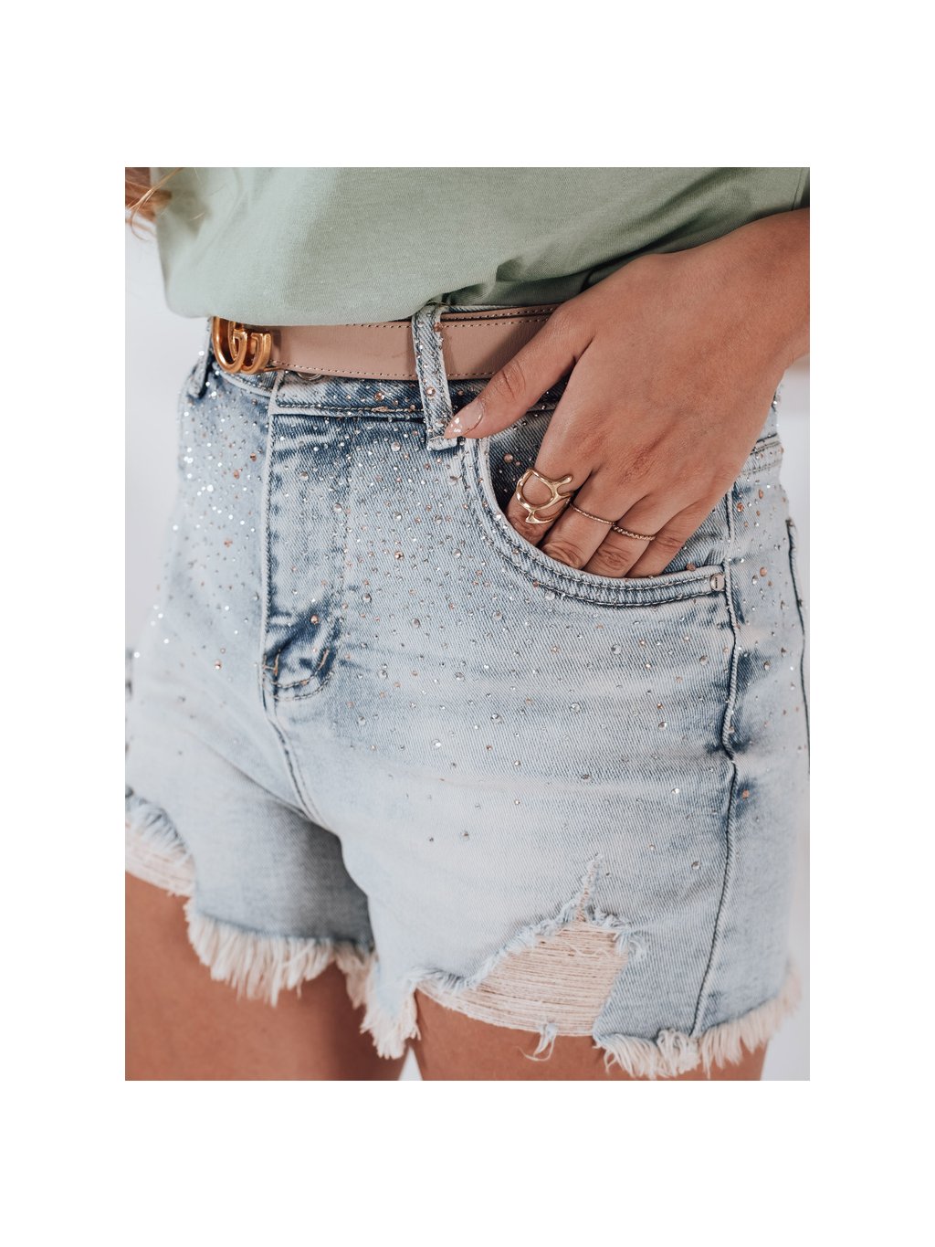 Světle modré dámské džínové šortky se zirkony LIKE A STAR