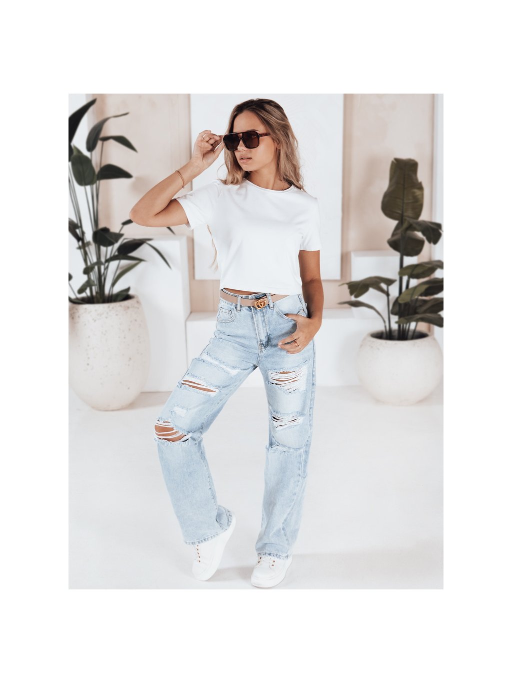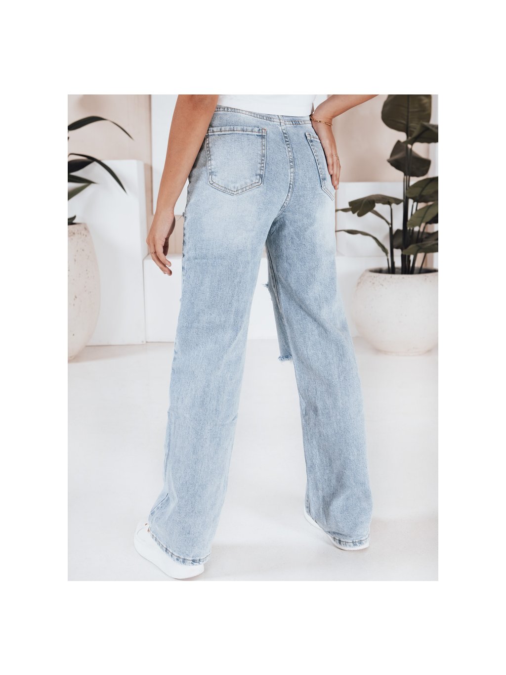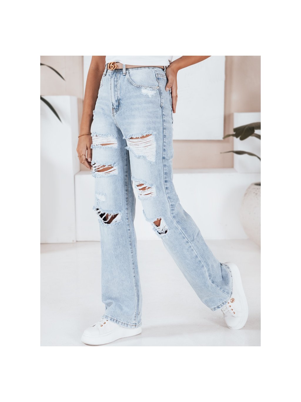 Světle modré dámské potrhané džíny s vysokým pasem