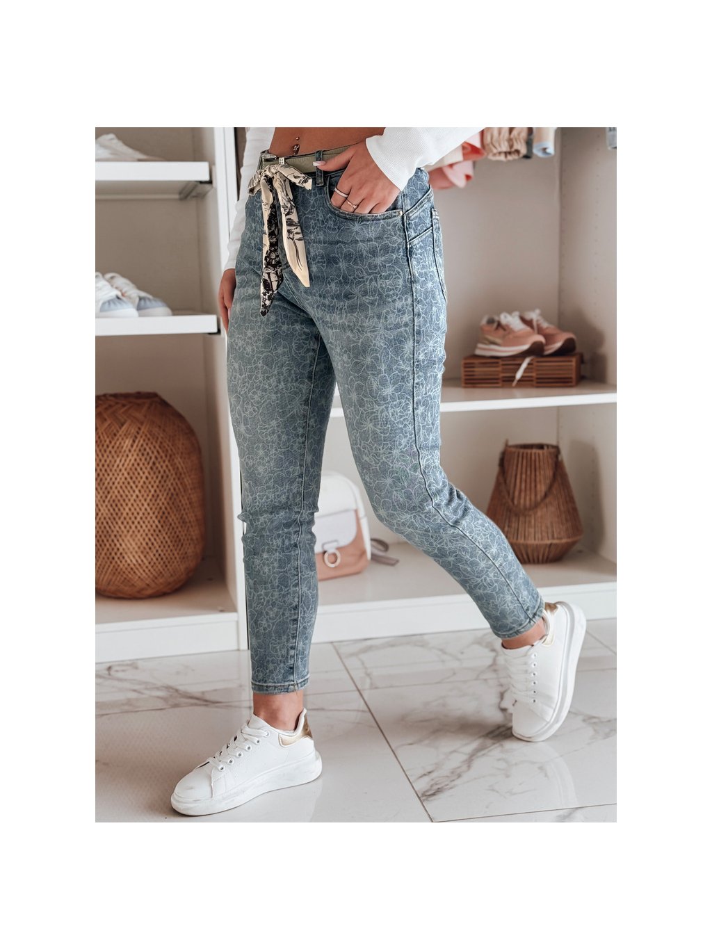 Světle modré dámské slim fit džíny s květinovým vzorem FLORAJIN