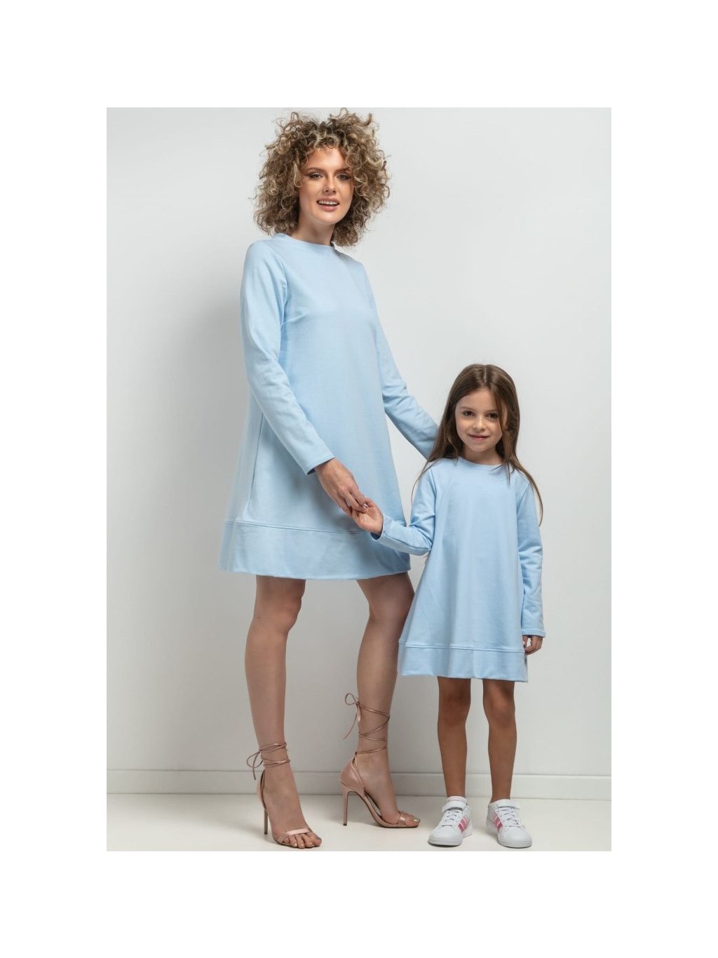 Světle modré dívčí šaty máma a dcera s ozdobným řasením ve spodní části