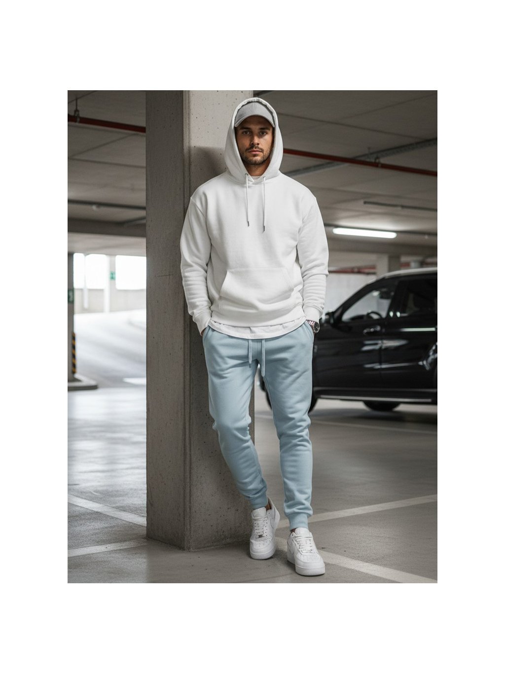 Světle modrá pánská mikina s kapucí