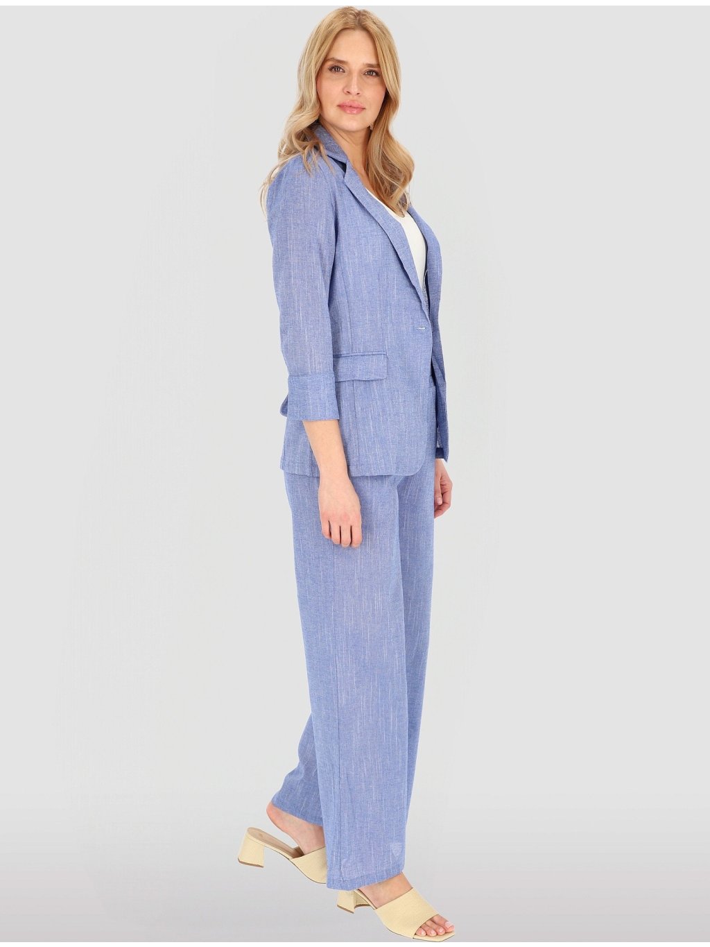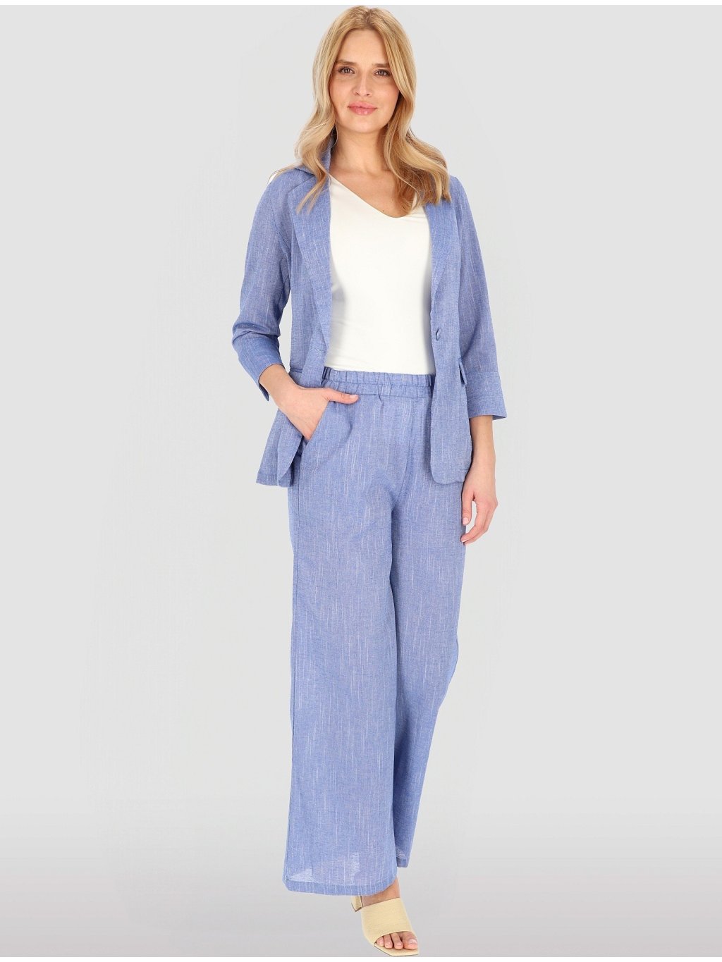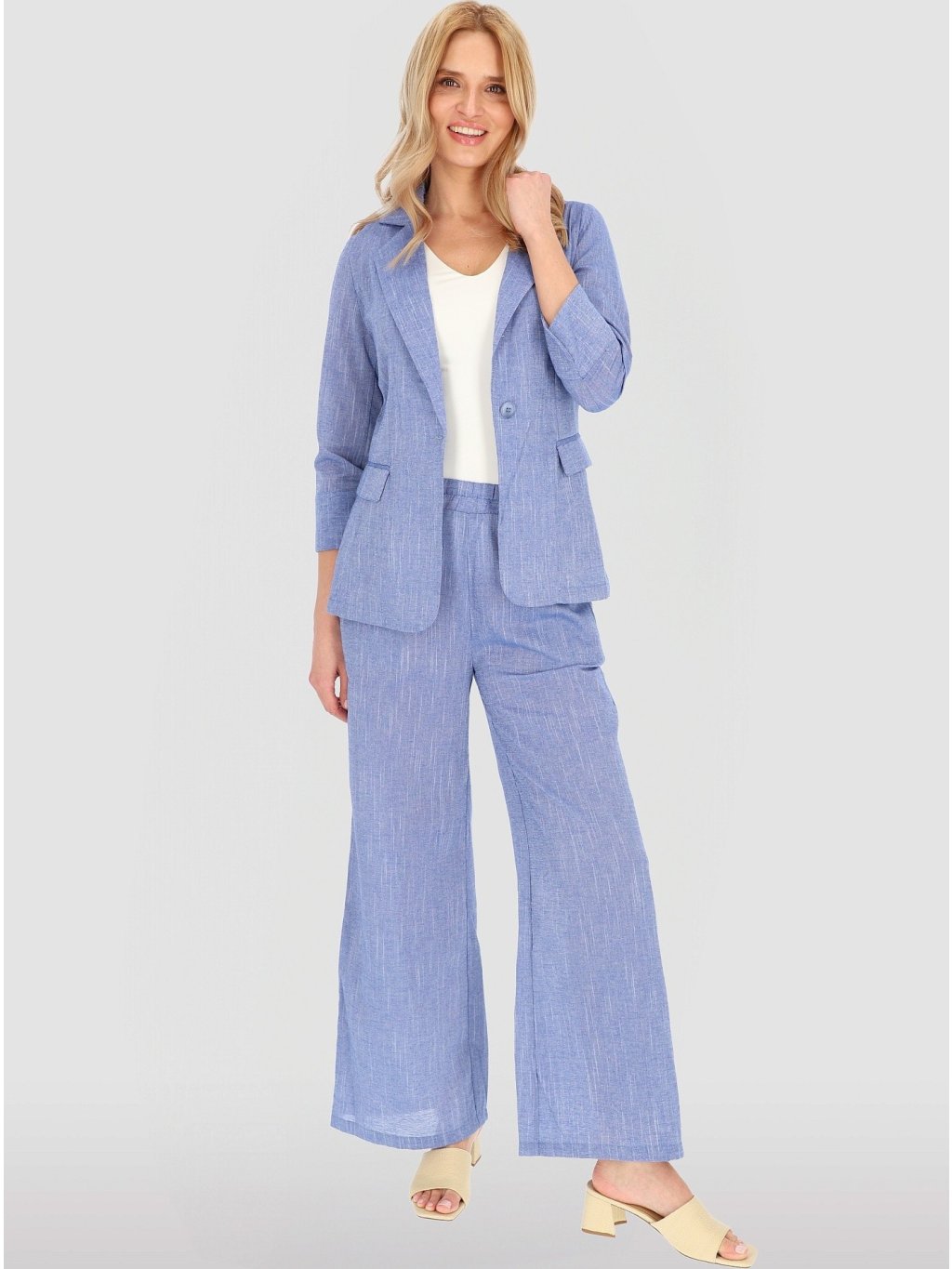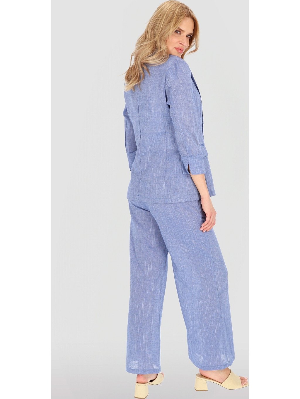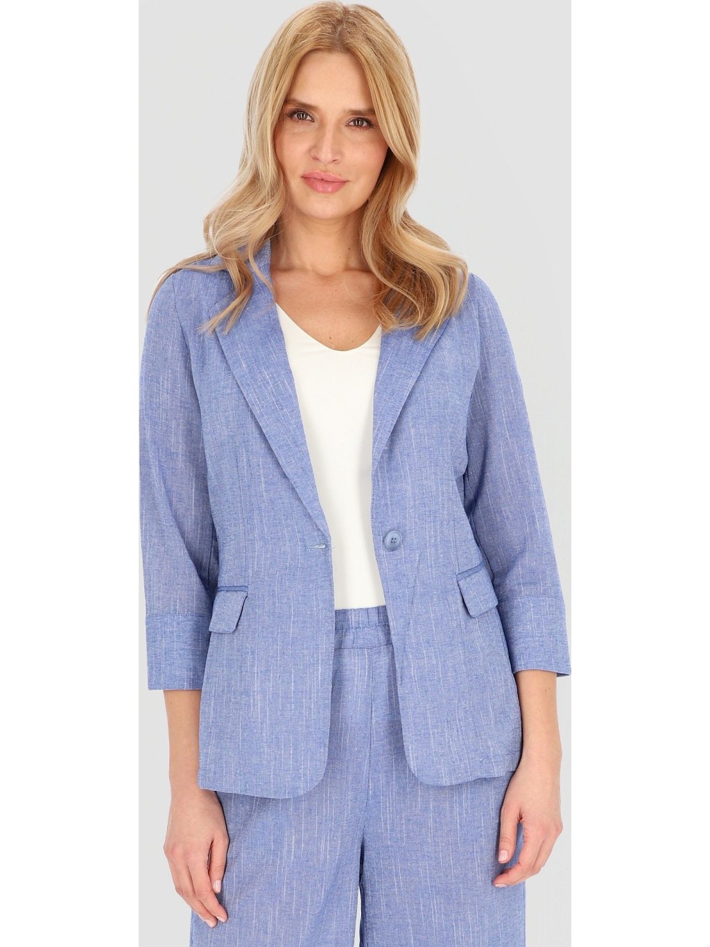 Světle modrý dámský lněný blejzr se 7/8 rukávy