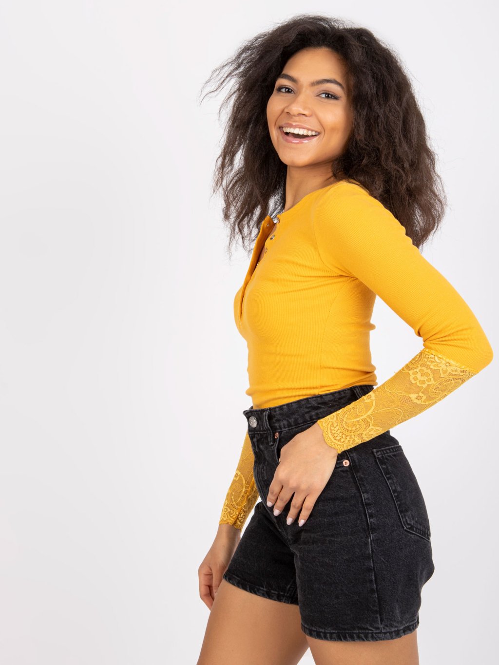 Modelka na obrázcích je vysoká 174 cm, obvod přes prsa má 83 cm, obvod pasu 62 cm a přes boky 91 cm.