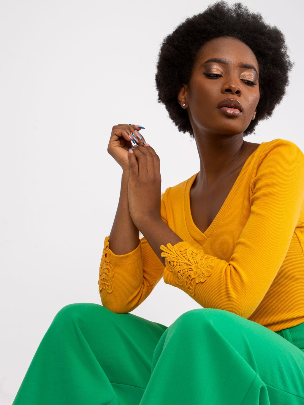 Světle oranžové žebrované tričko Alissia s krajkou na rukávech