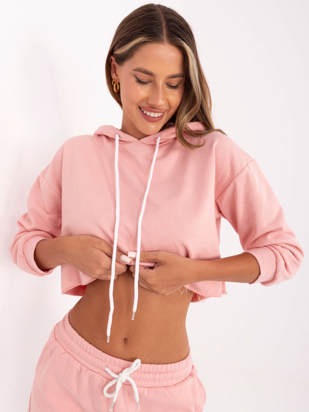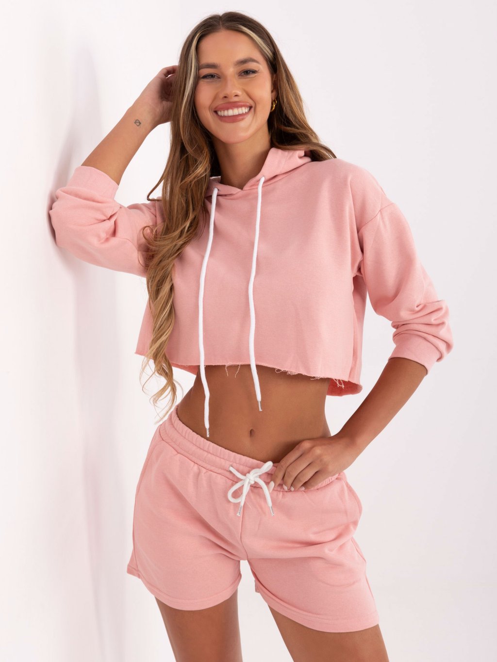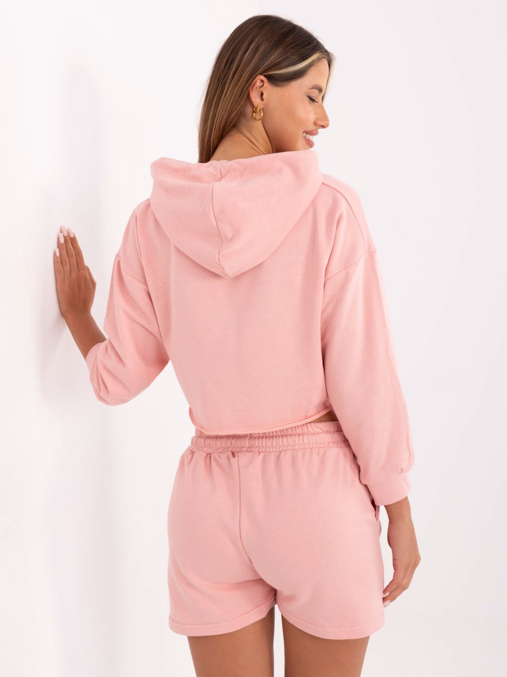 Světle růžová krátká tepláková souprava mikiny a šortek