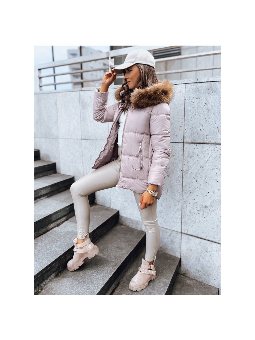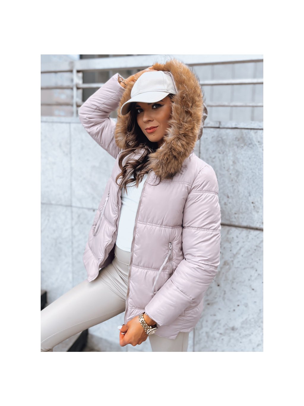 Světle růžová prošívaná bunda AMBER DAWN
