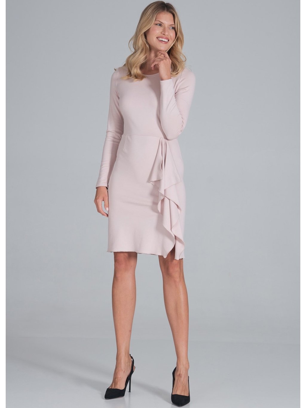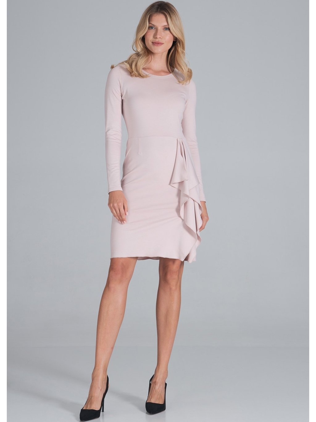 Světle růžové mini šaty s ozdobným volánkem