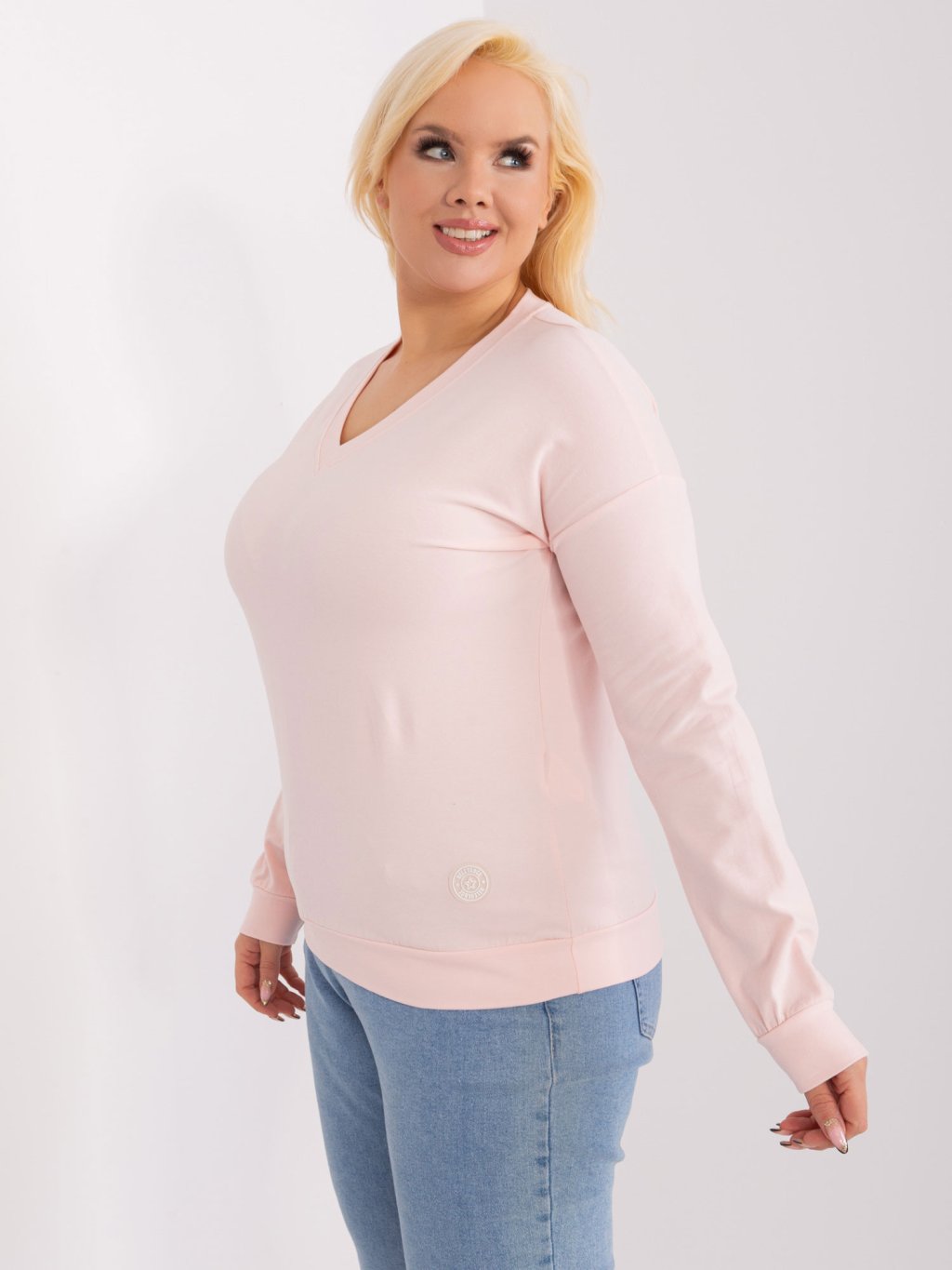 Světle růžové tričko s výstřihem do V