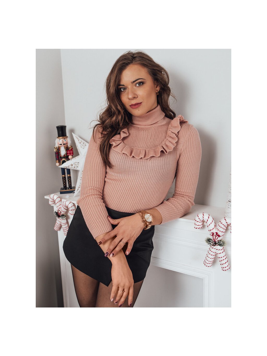 Světle růžový rolák s volánem NOAH