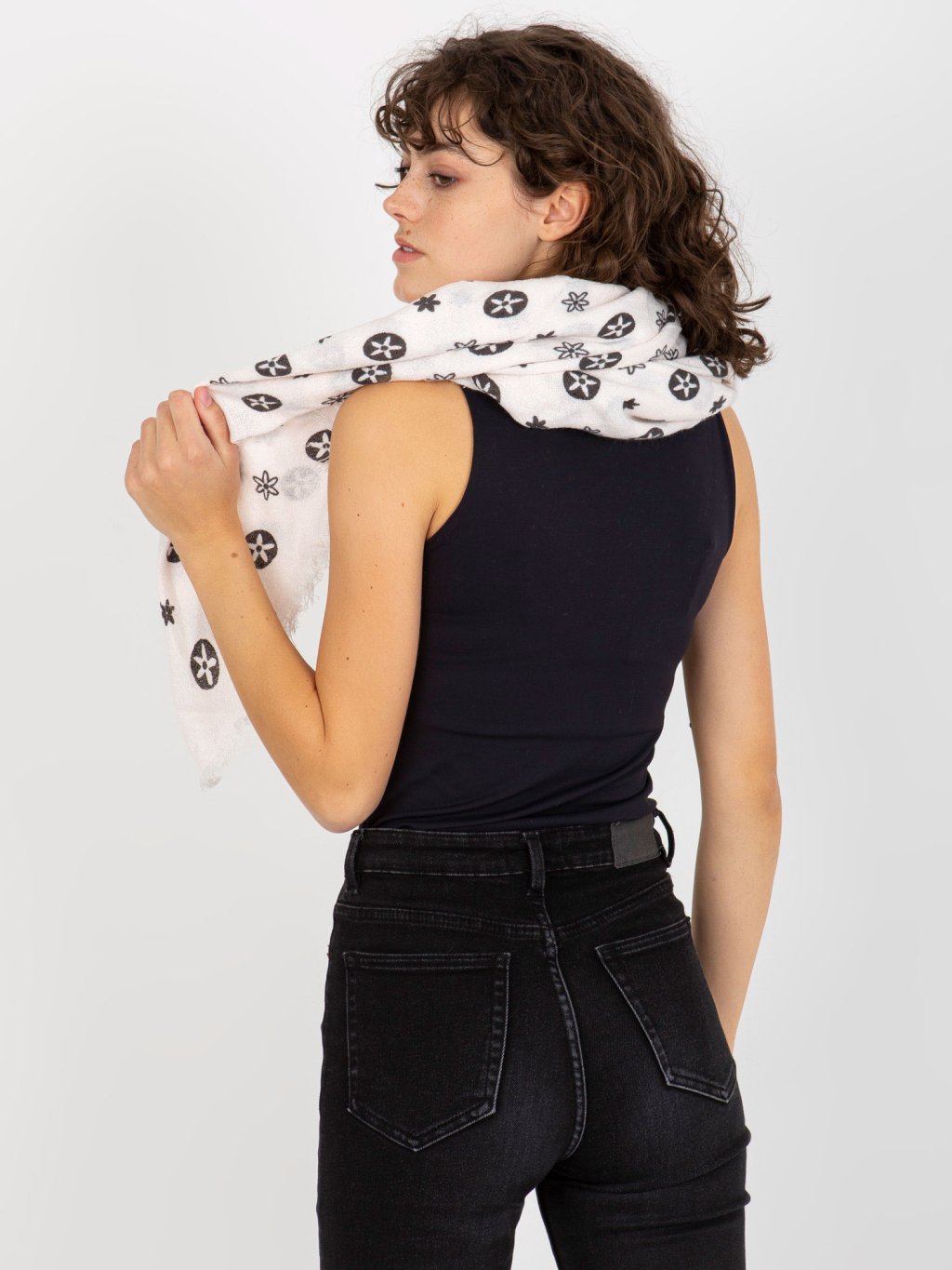 Tmavě šedá šála se vzorem