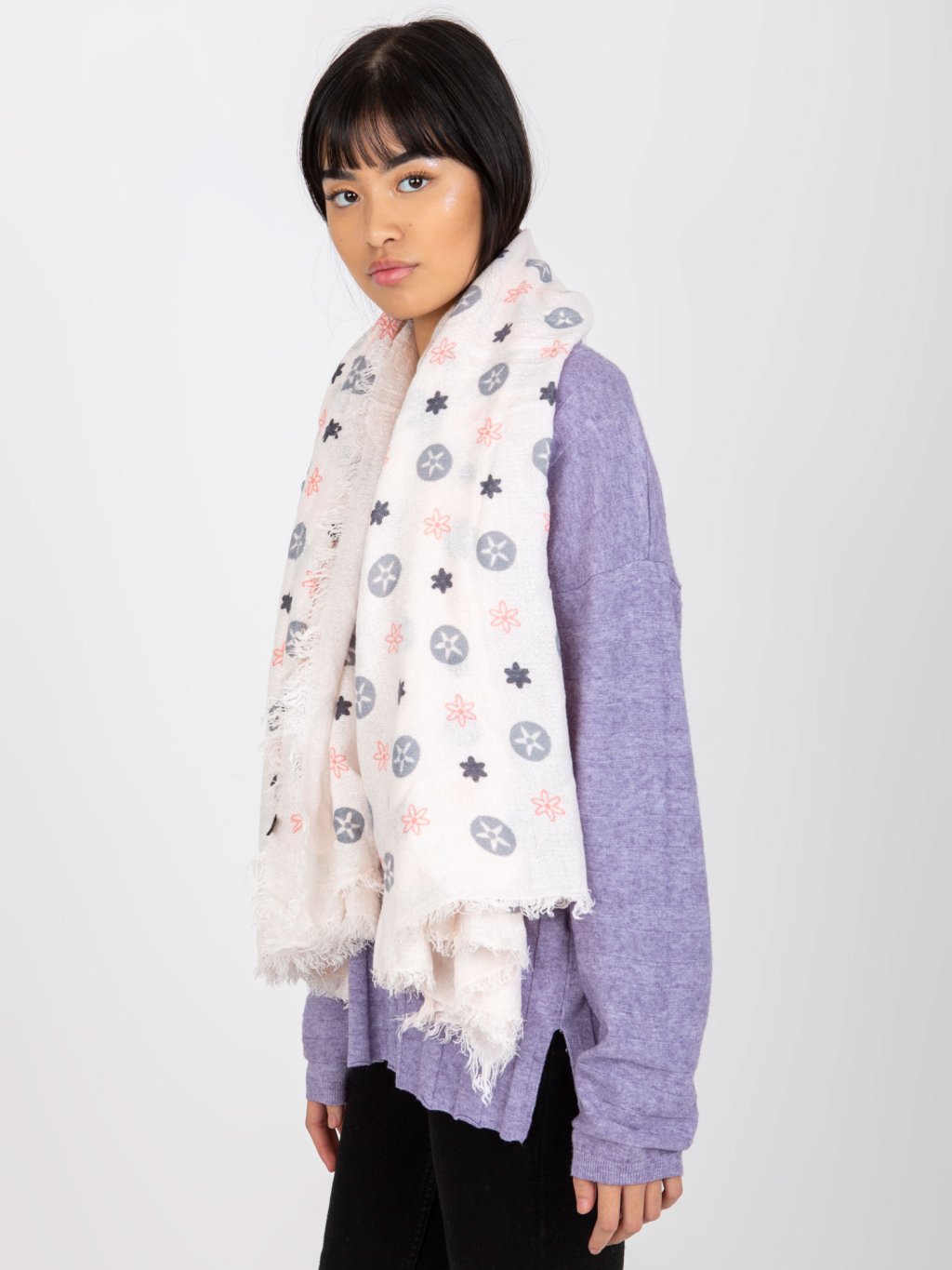 Béžová šála se vzorem