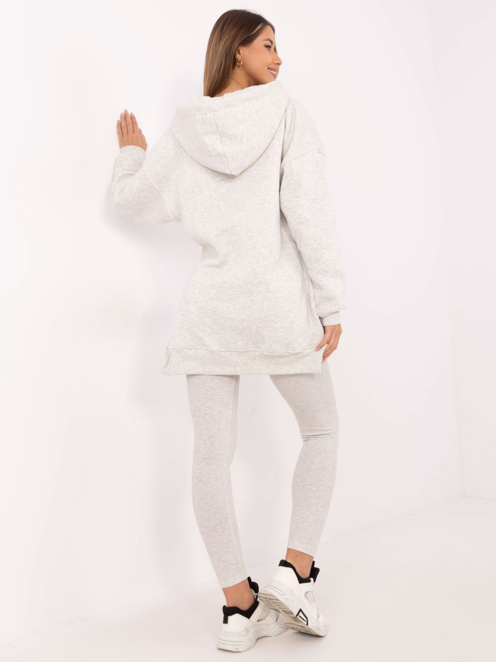 Světle šedá dámská třídílná souprava s asymetrickou mikinou