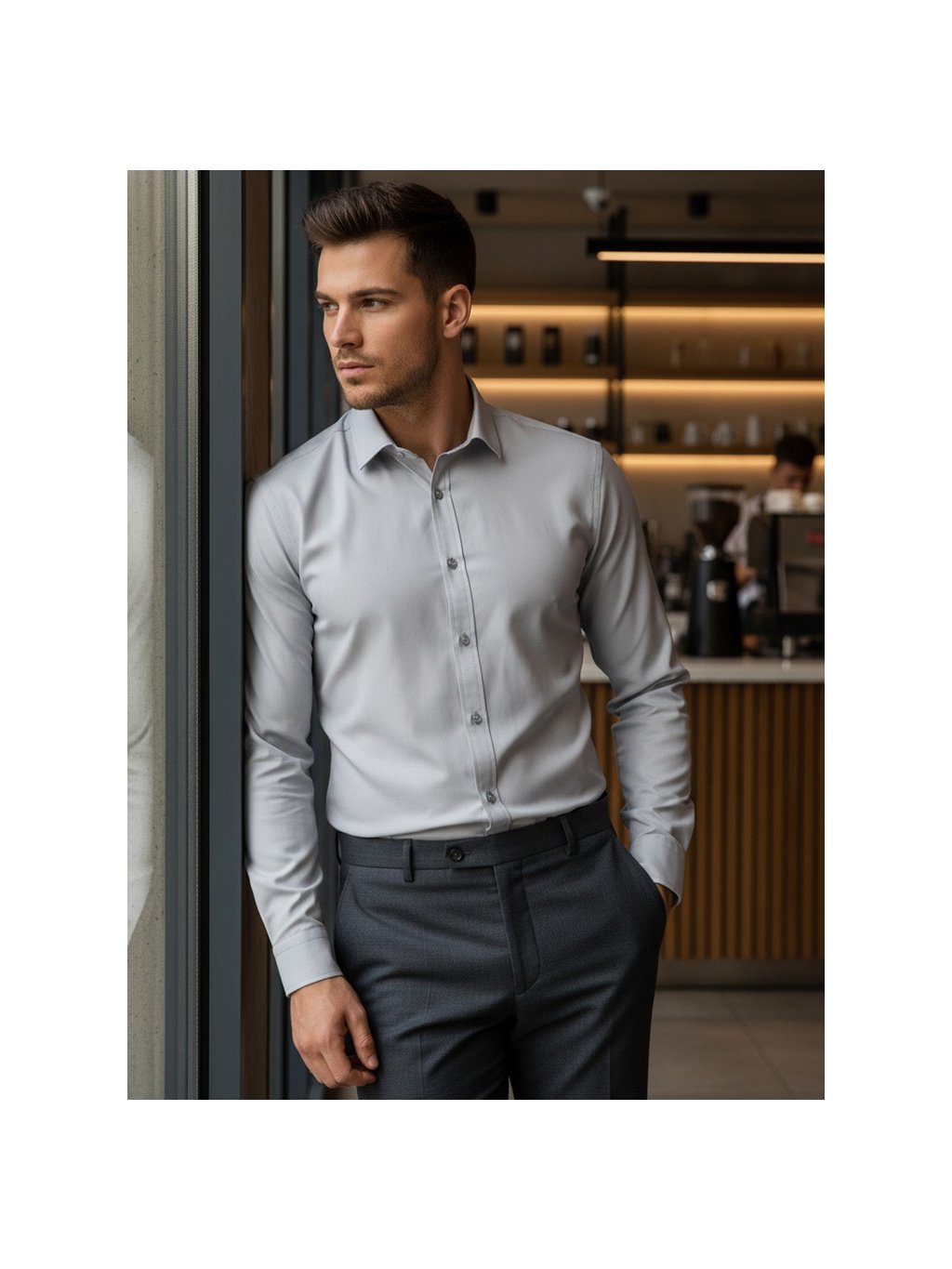 Světle šedá jednobarevná pánská košile