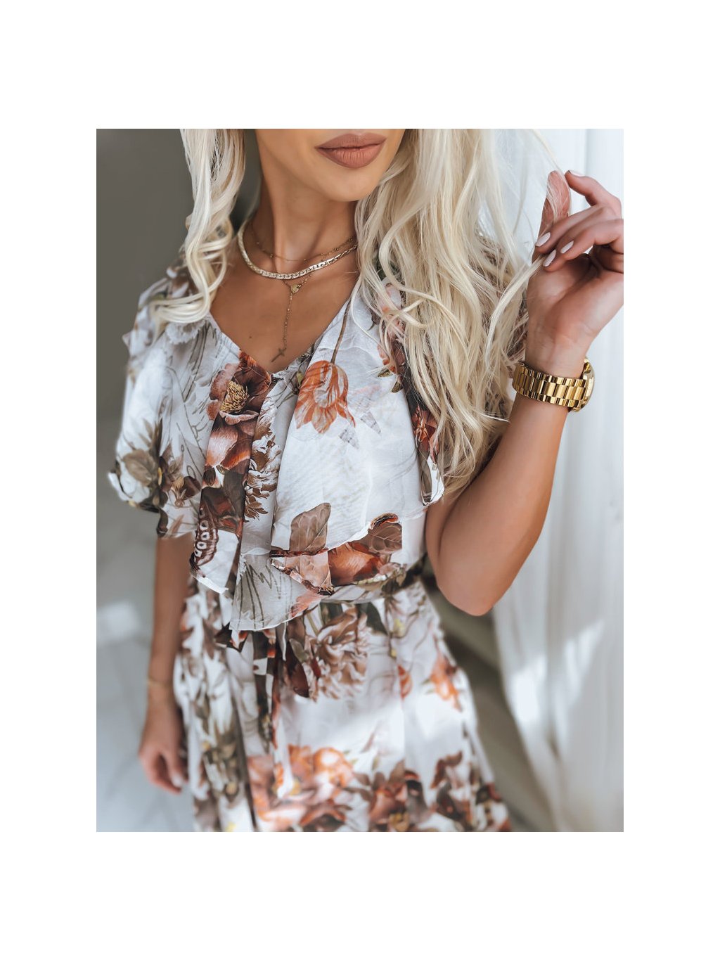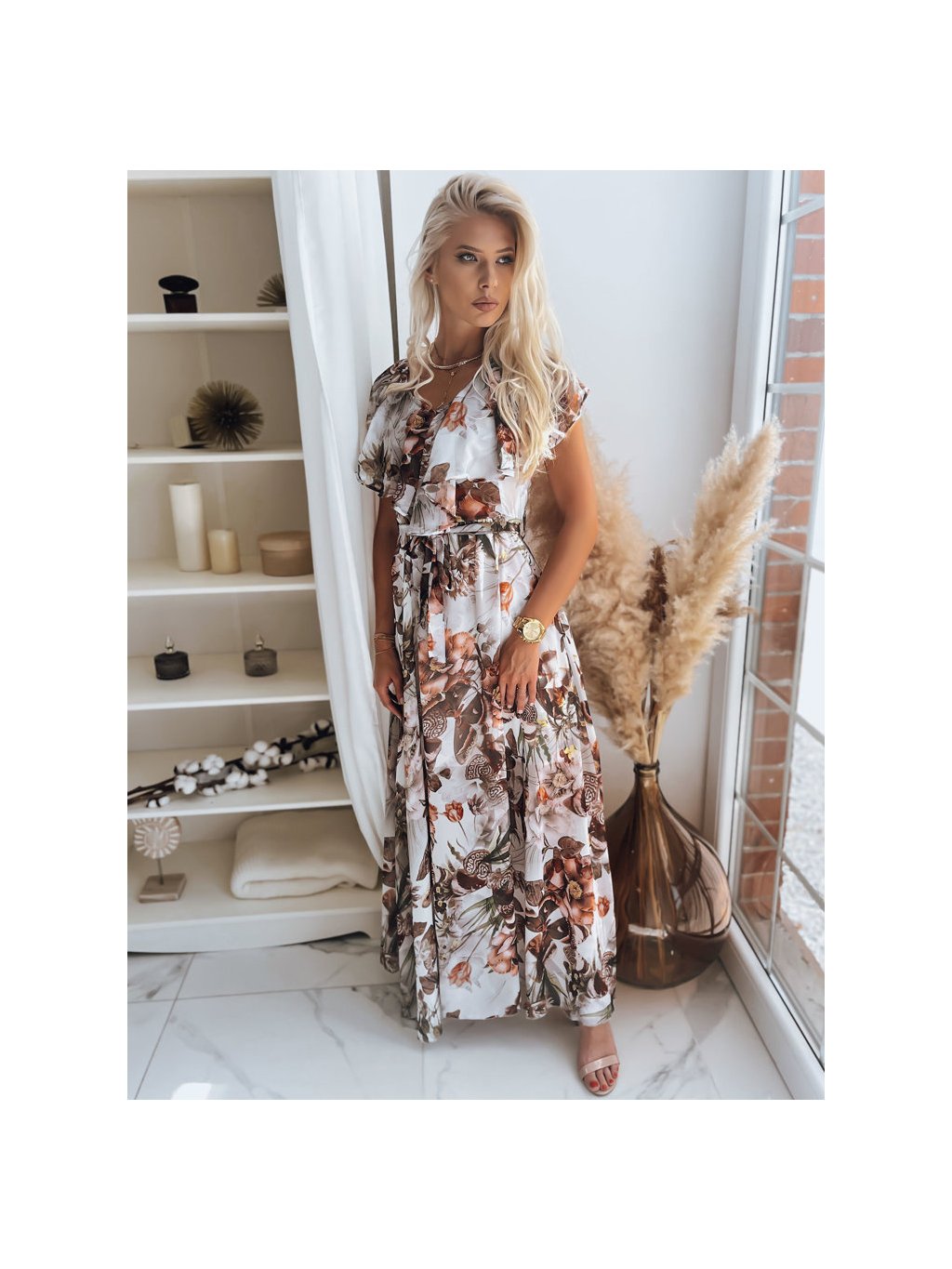 Světle šedo - hnědé maxi šaty se vzorem CRESPO