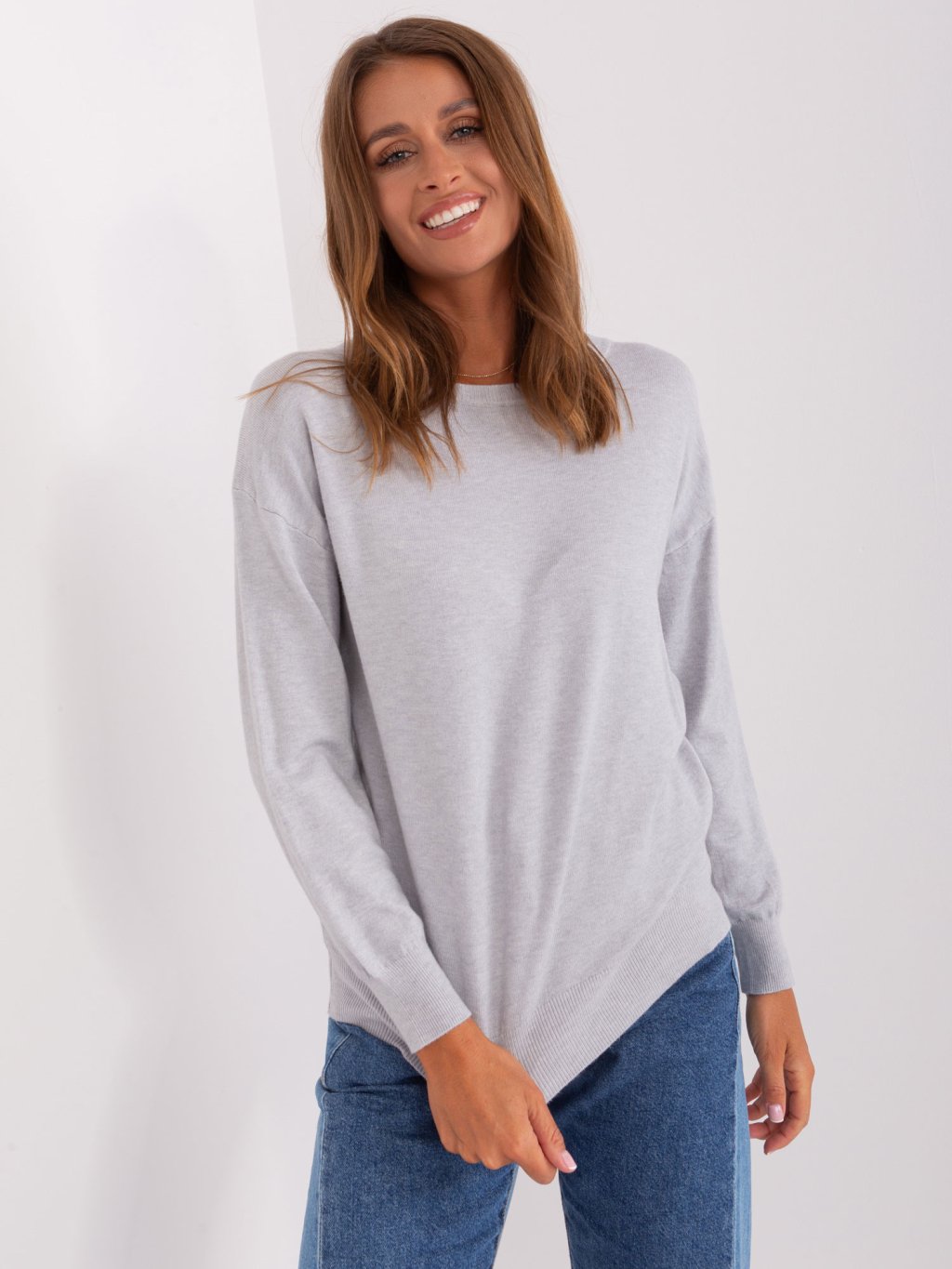 Světle šedý basic svetr