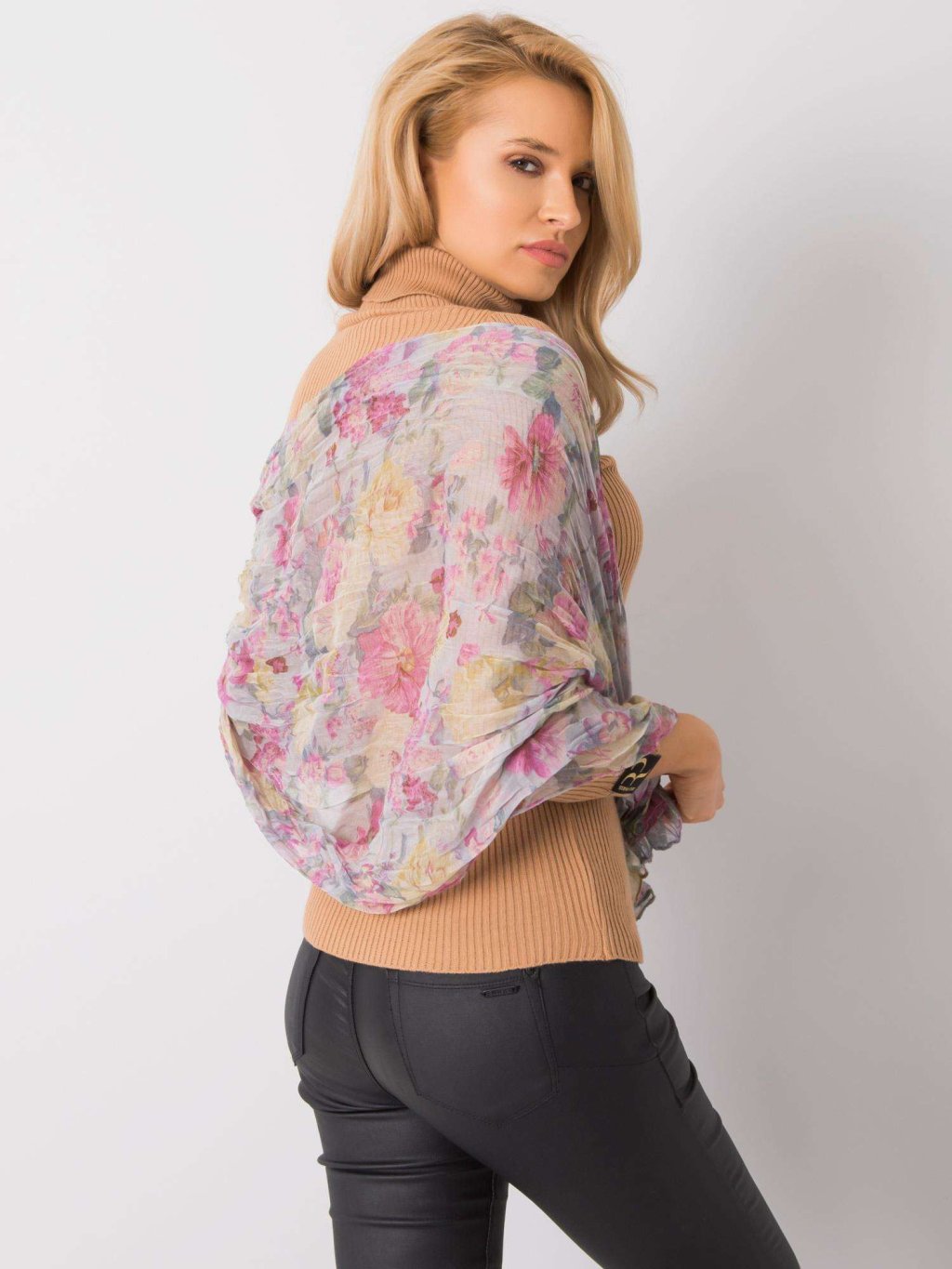 Světle šedý šátek s motivem květin