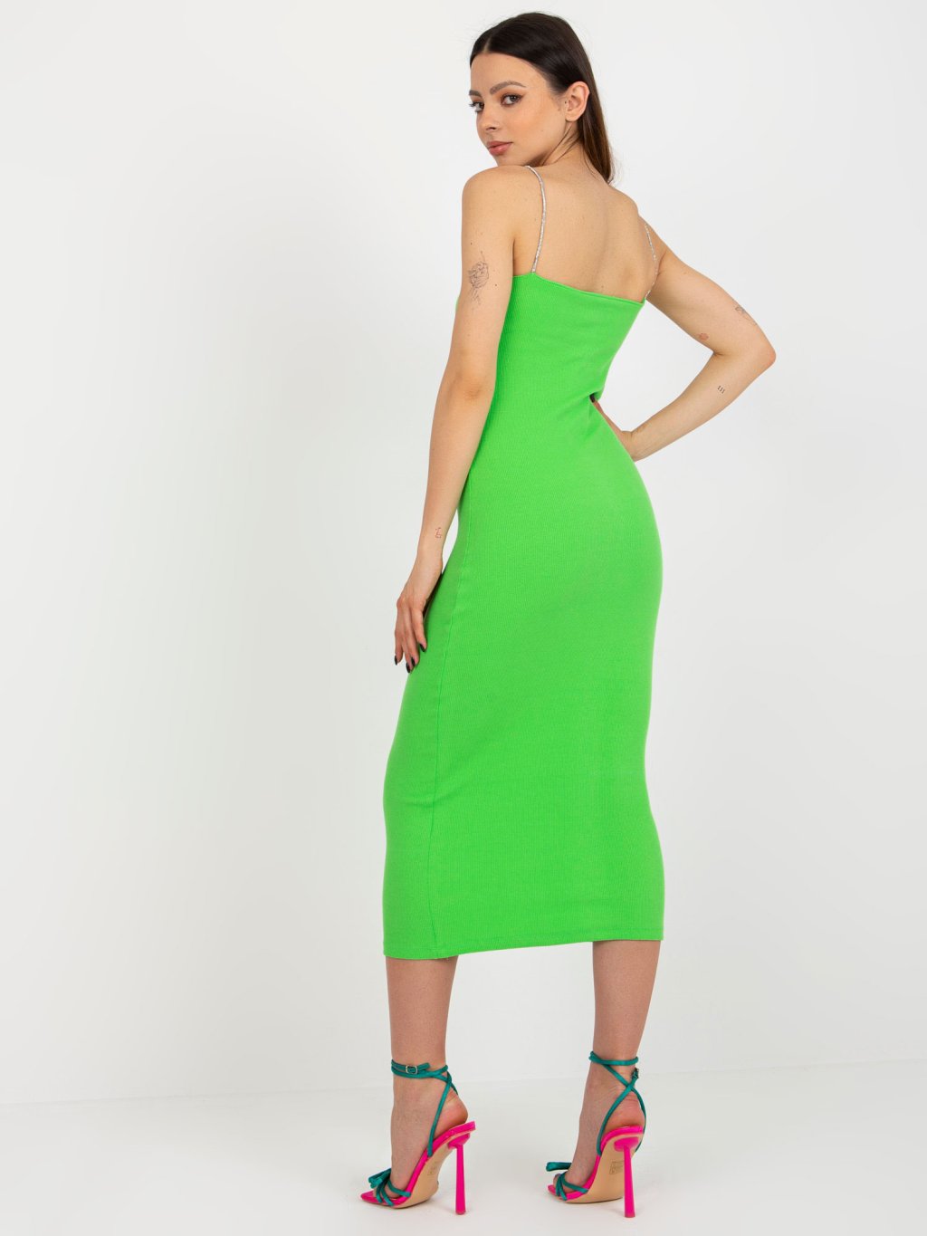 Modelka na obrázcích je vysoká 175 cm, obvod přes prsa 84 cm, obvod pasu 61 cm a boky 91 cm.