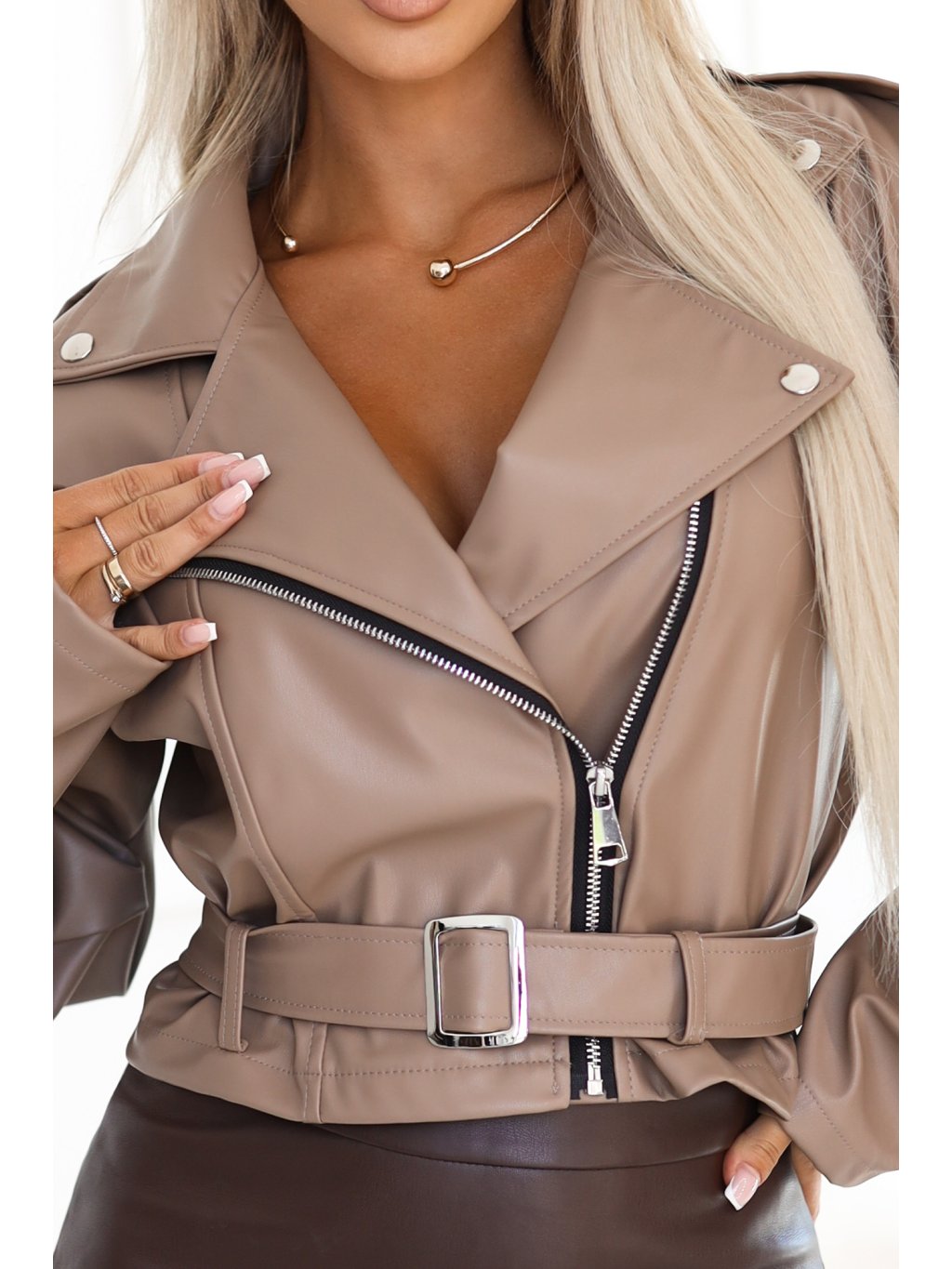 Tmavě béžová dámská koženková bunda