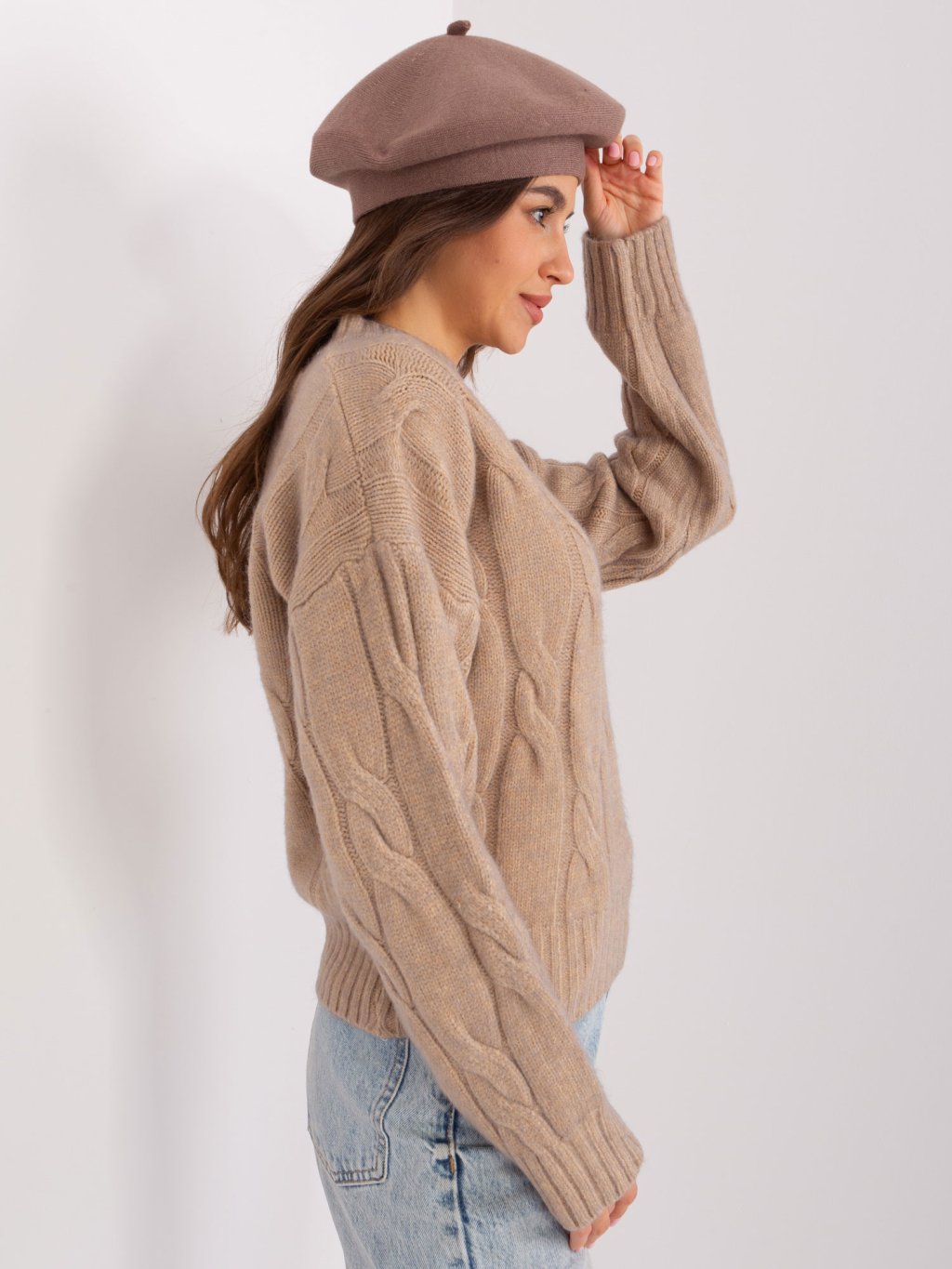 Tmavě béžový dámský baret