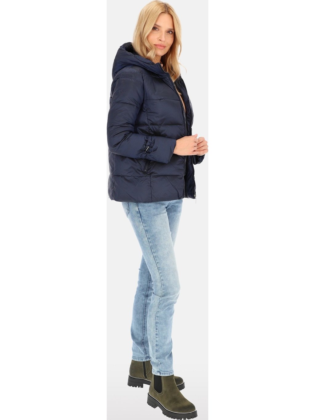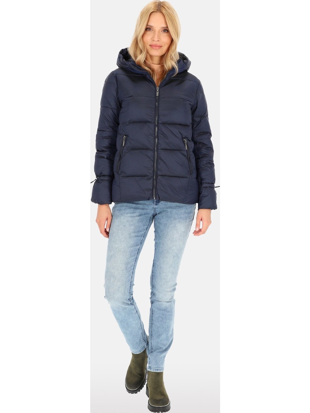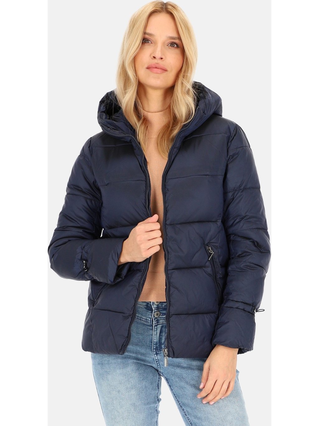 Tmavě modrá dámská přechodová prošívaná bunda
