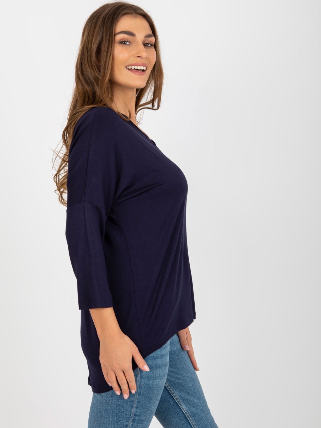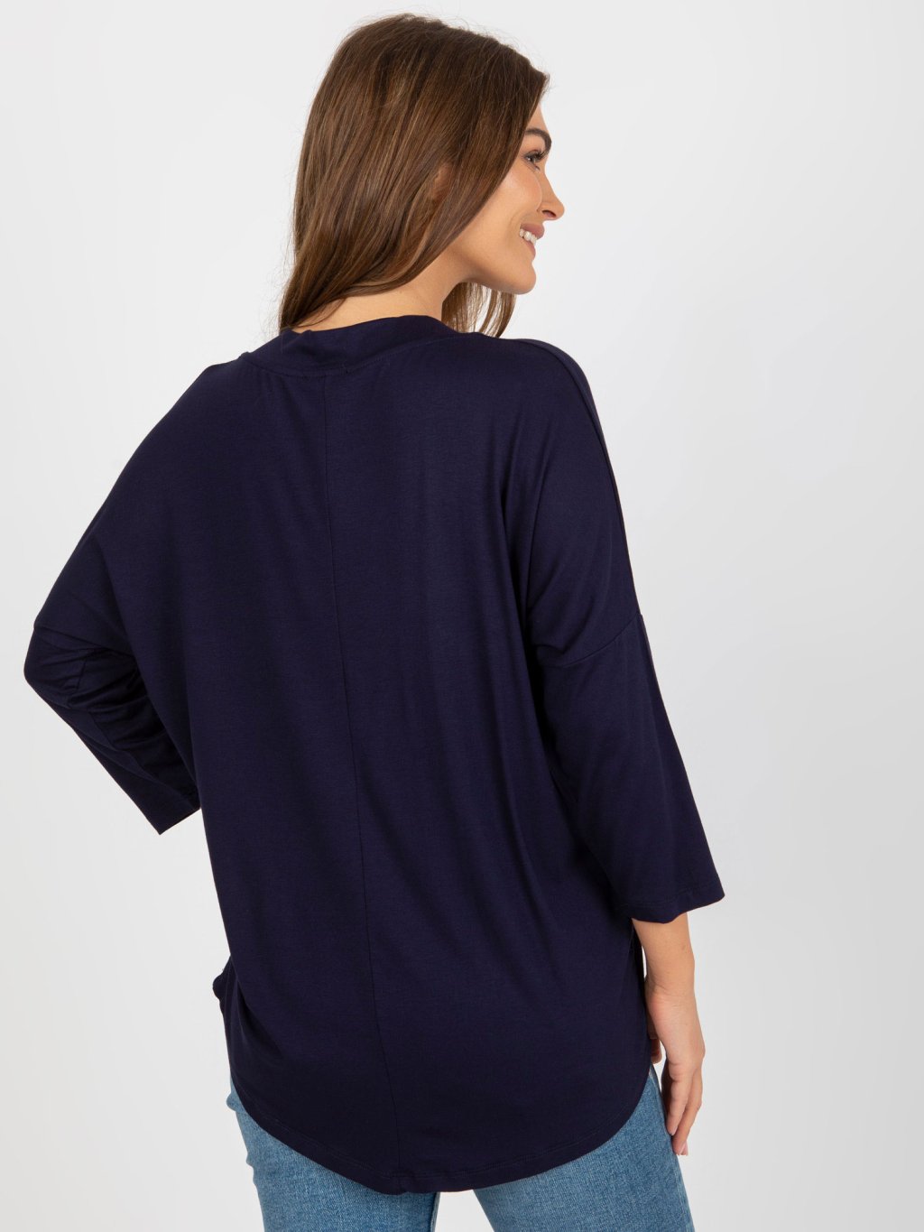 Tmavě modrá jednobarevná halenka s 3/4 rukávem