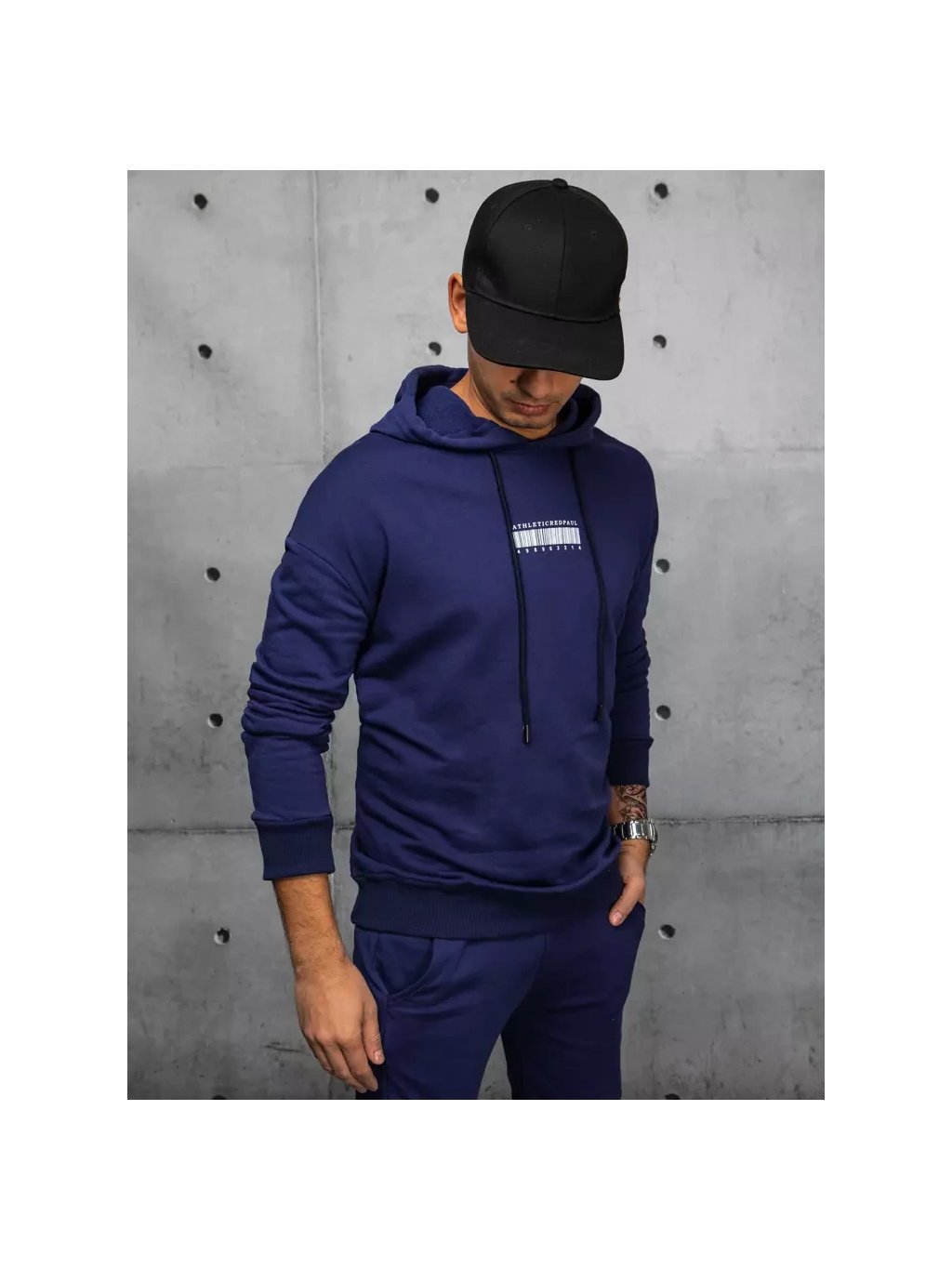 Tmavě modrá teplákovka s potisky na zádech