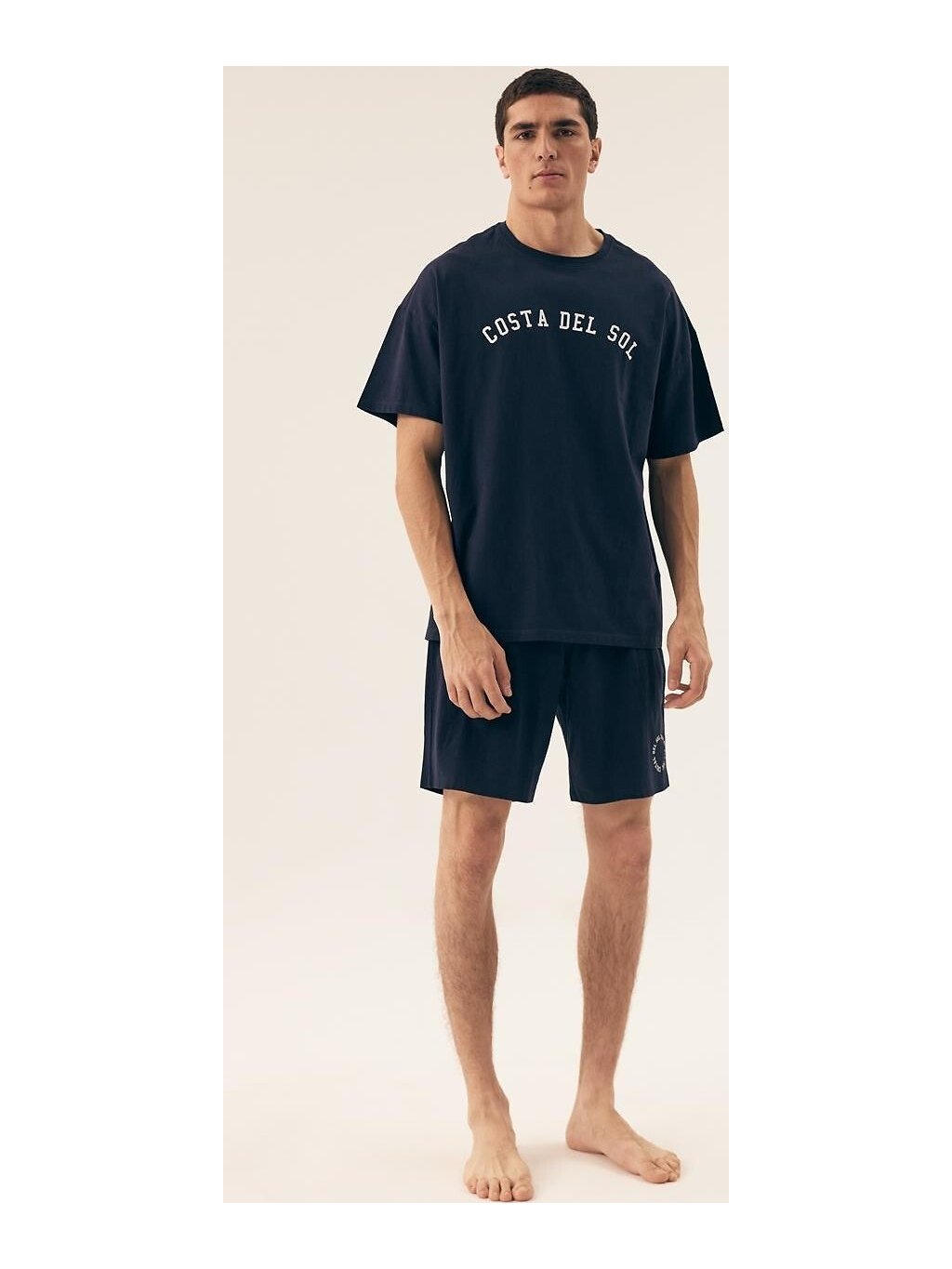 Tmavě modré pánské krátké pyžamo s potiskem Henderson Core