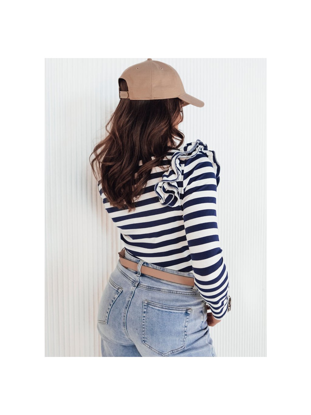 Tmavě modro-bílé pruhované tričko s volánkem MORAS