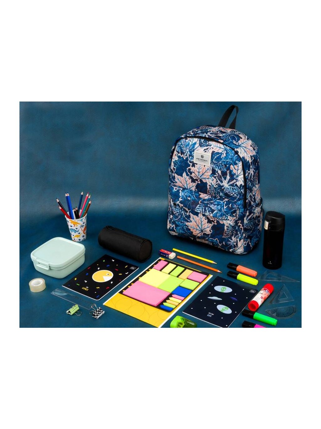 Tmavě modrý batoh s listy Peterson