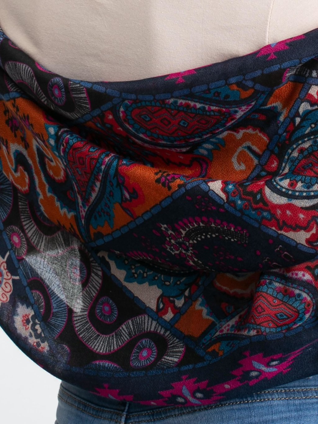 Tmavě modrý šátek s barevným vzorováním