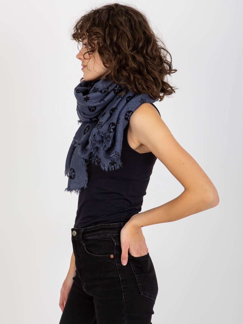 Tmavě šedá šála se vzorem