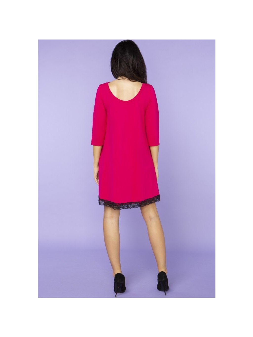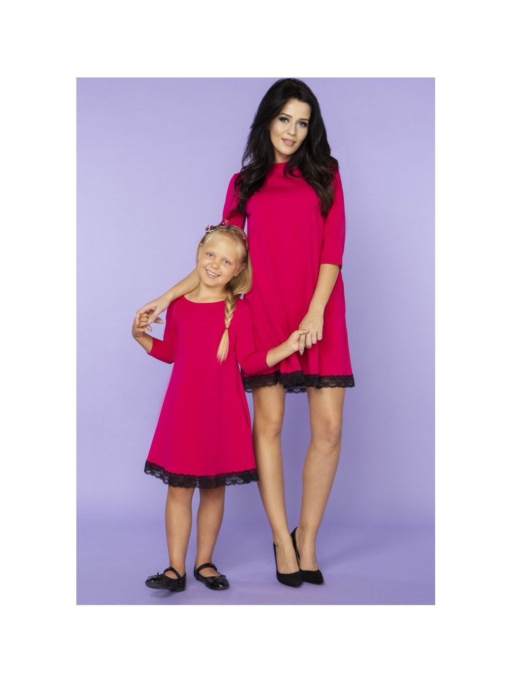 Tmavě růžové elegantní šaty máma a dcera s krajkou ve spodní části
