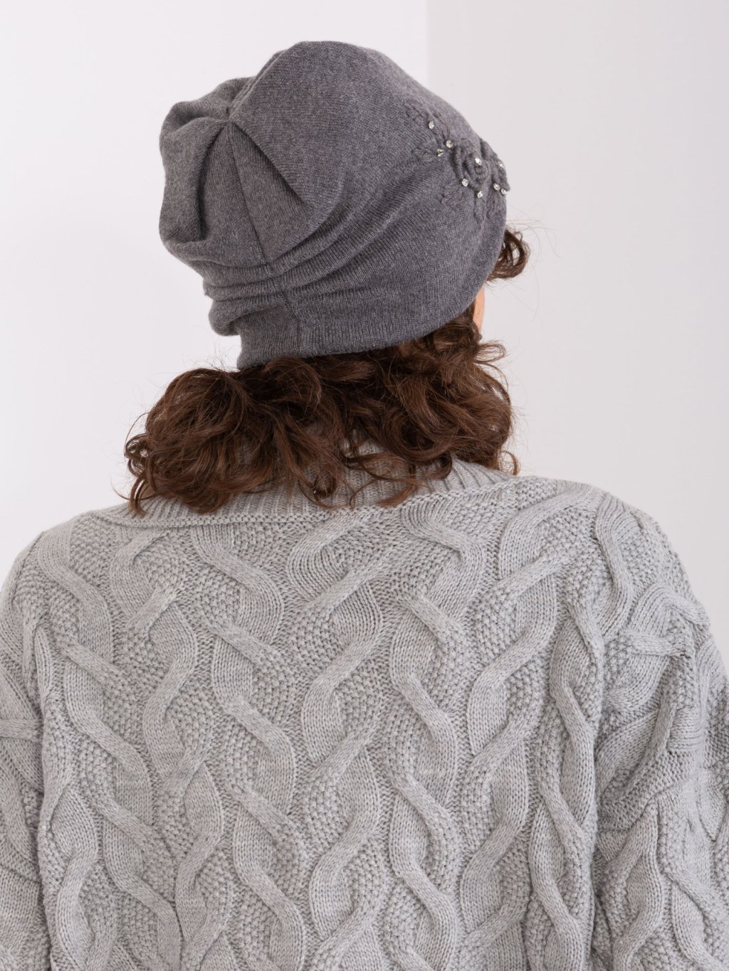 Tmavě šedá čepice s květinovou aplikací