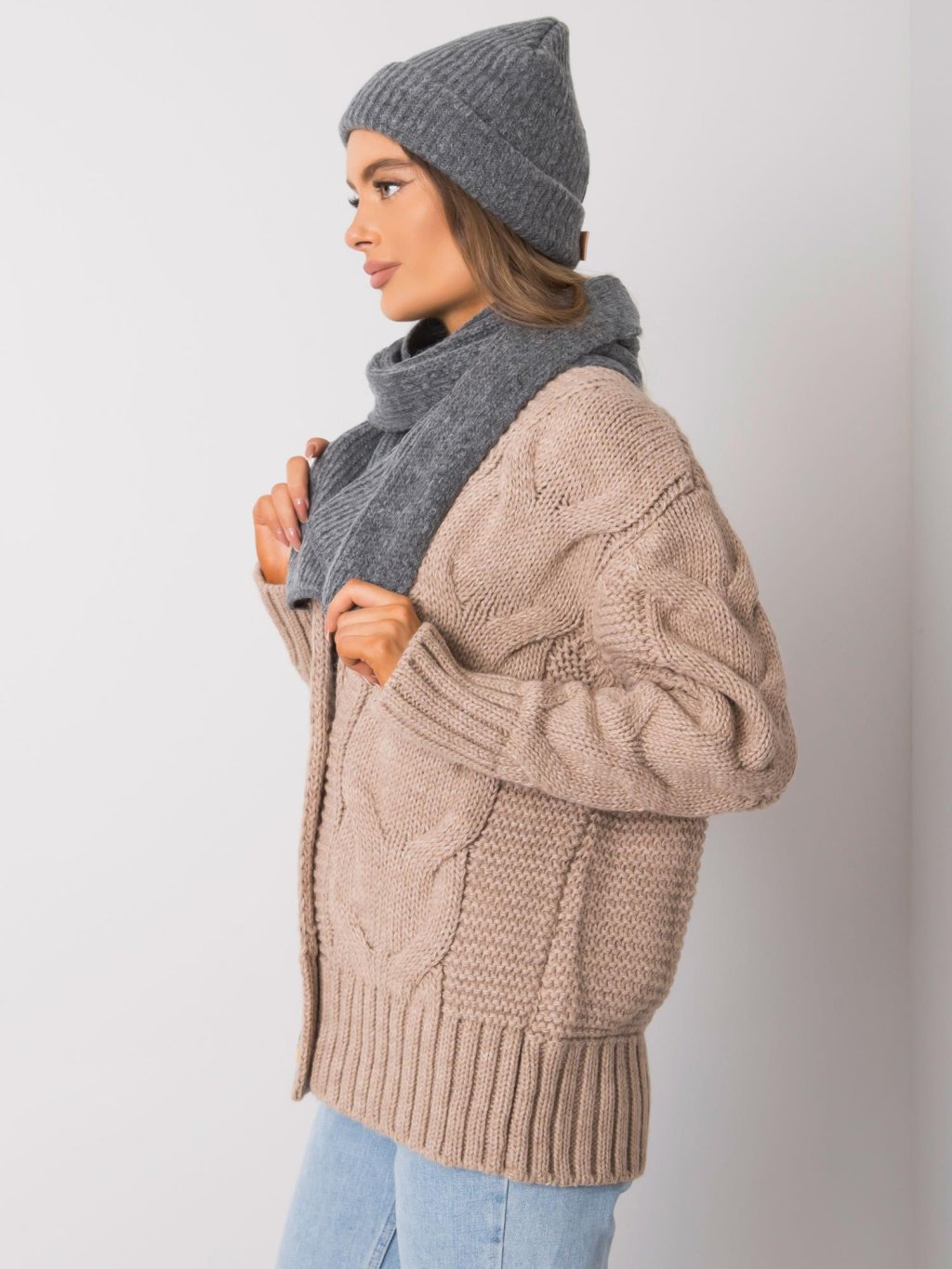 Tmavě šedá sada čepice a šály