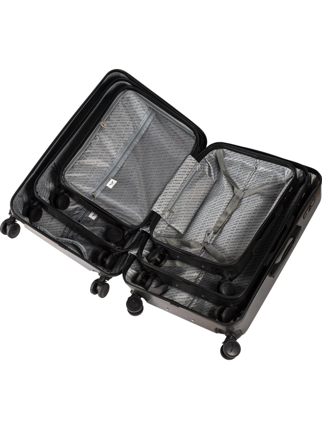 - každý kufr má 4 otočná kolečka o 360 stupňů