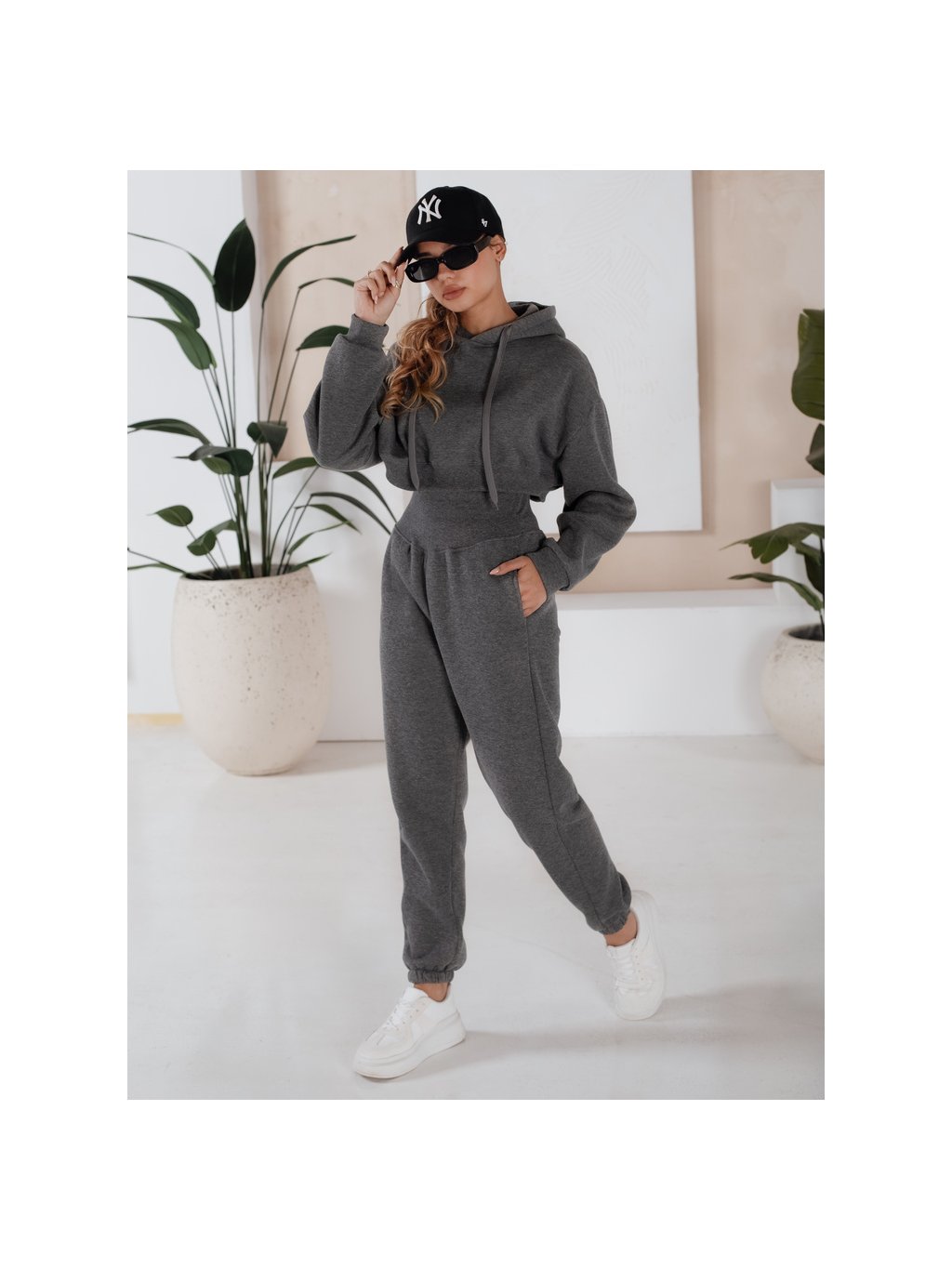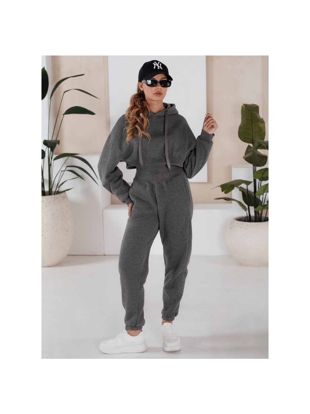Tmavě šedá teplákovka SERINE s "crop" mikinou