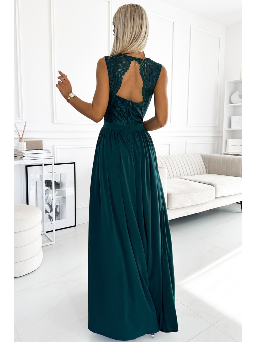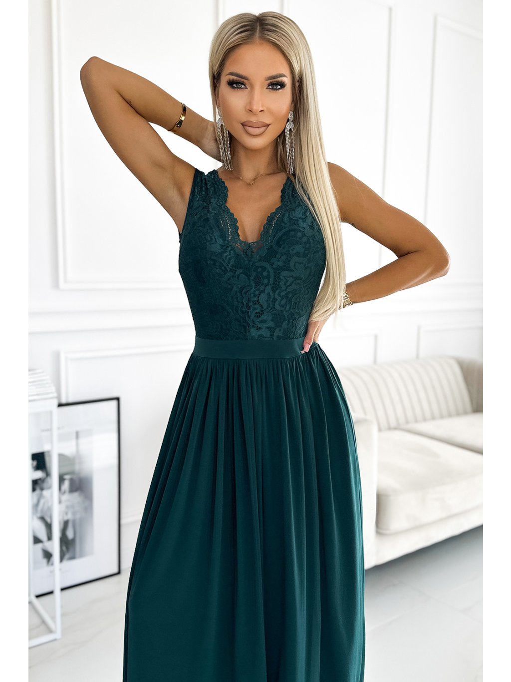 Tmavě zelené maxi šaty s krajkovým topem LEA