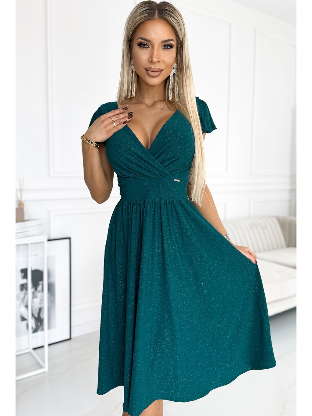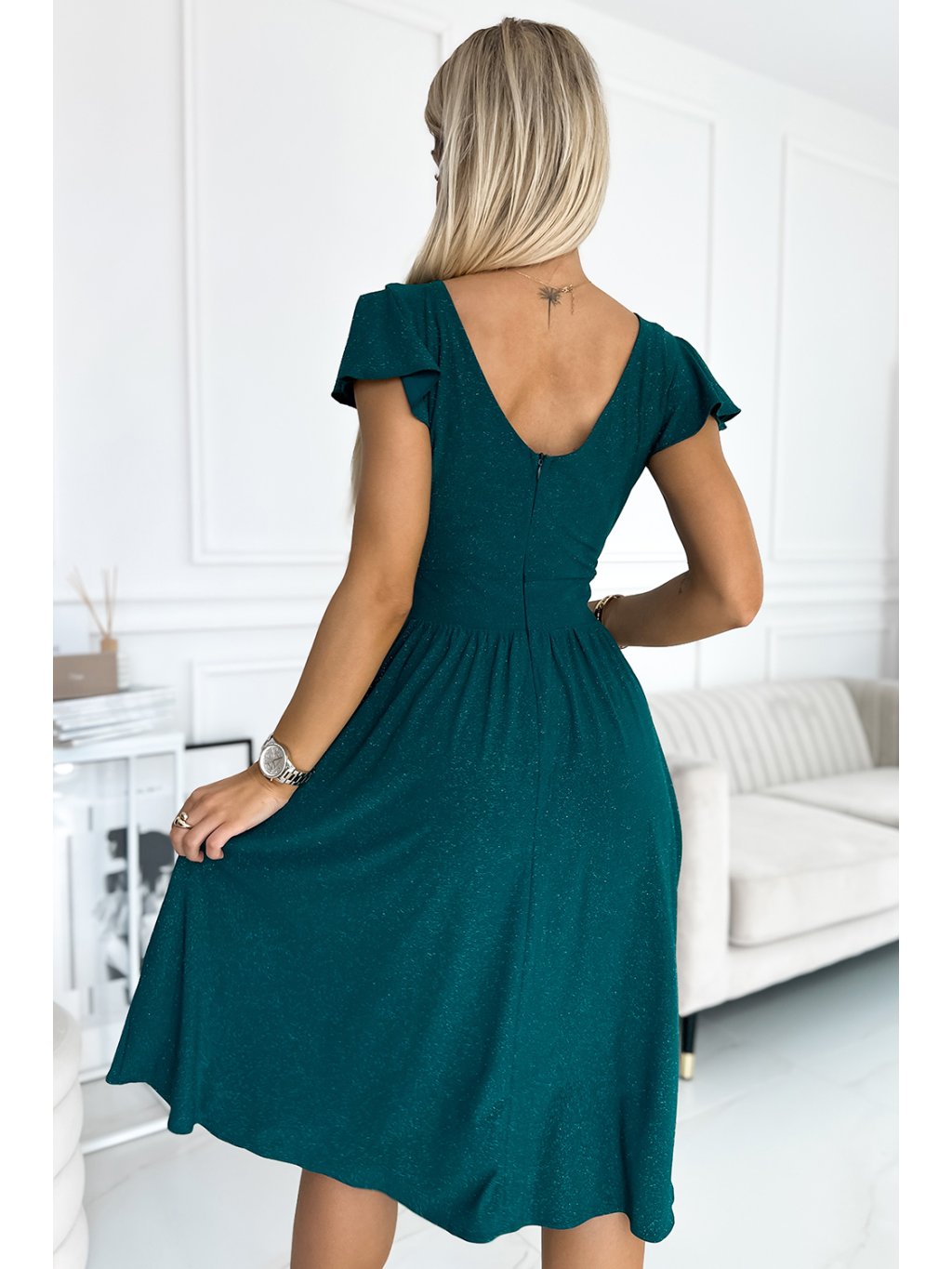 Tmavě zelené třpytivé midi šaty MATYLDA