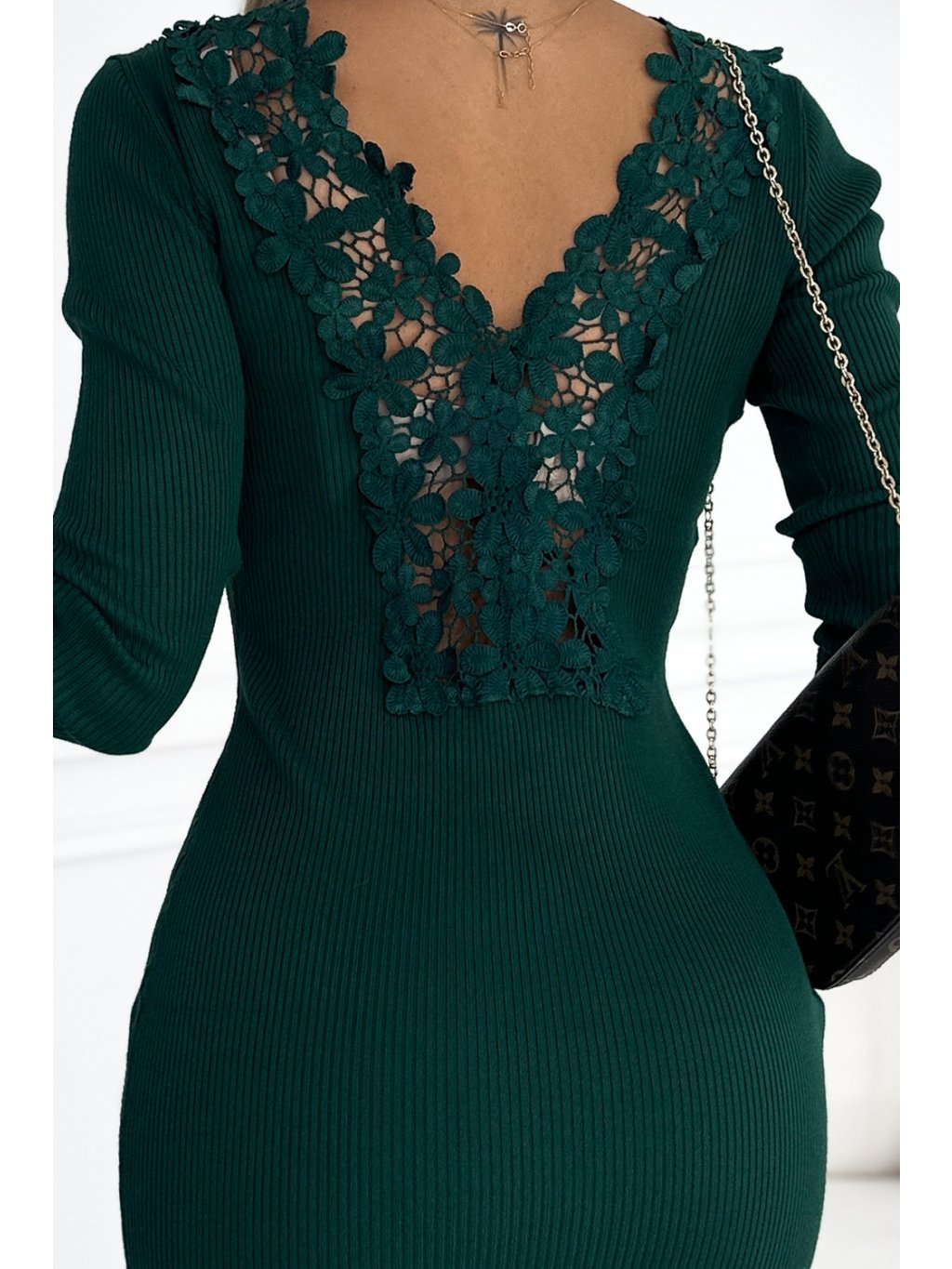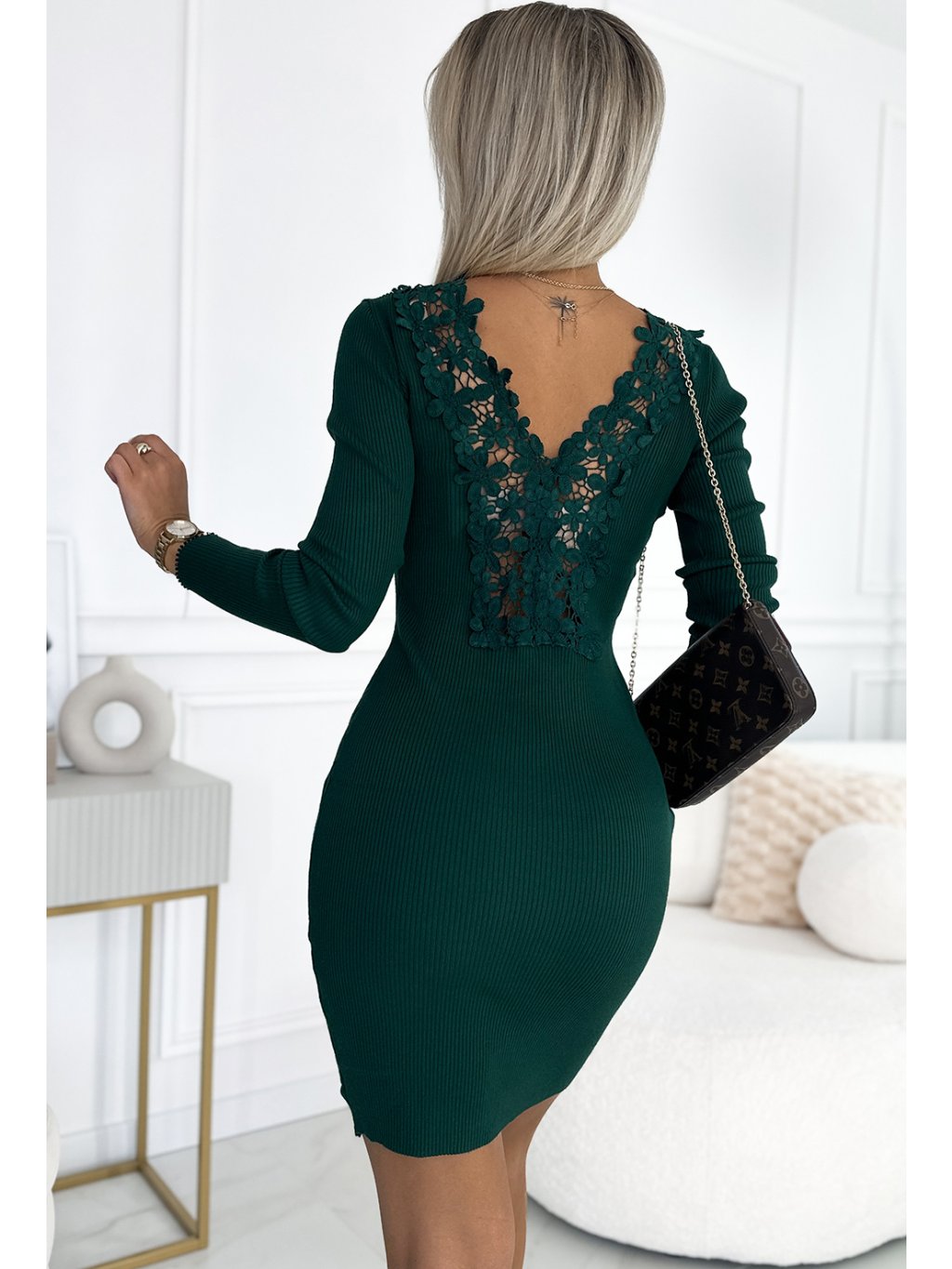Tmavě zelené uplé mini šaty s krajkou na zádech